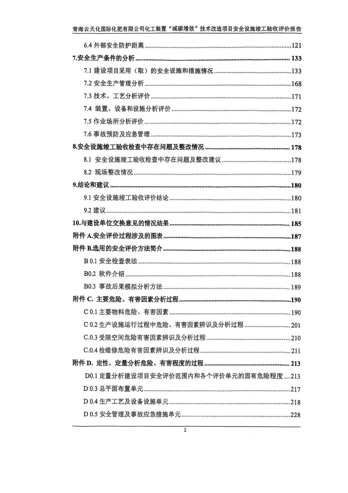 项目名称 | 青海云天化国际化肥有限公司 化工装置“减碳增效”技术改造项目安全设施竣工验收报告 | ||||||