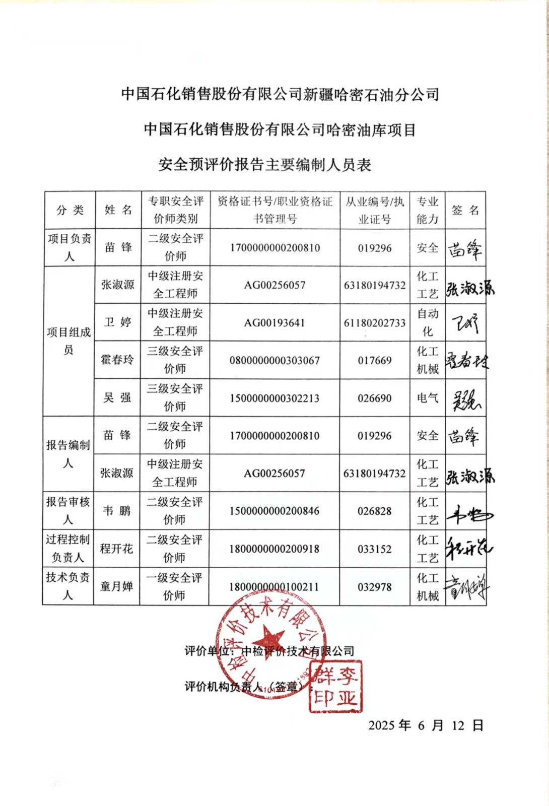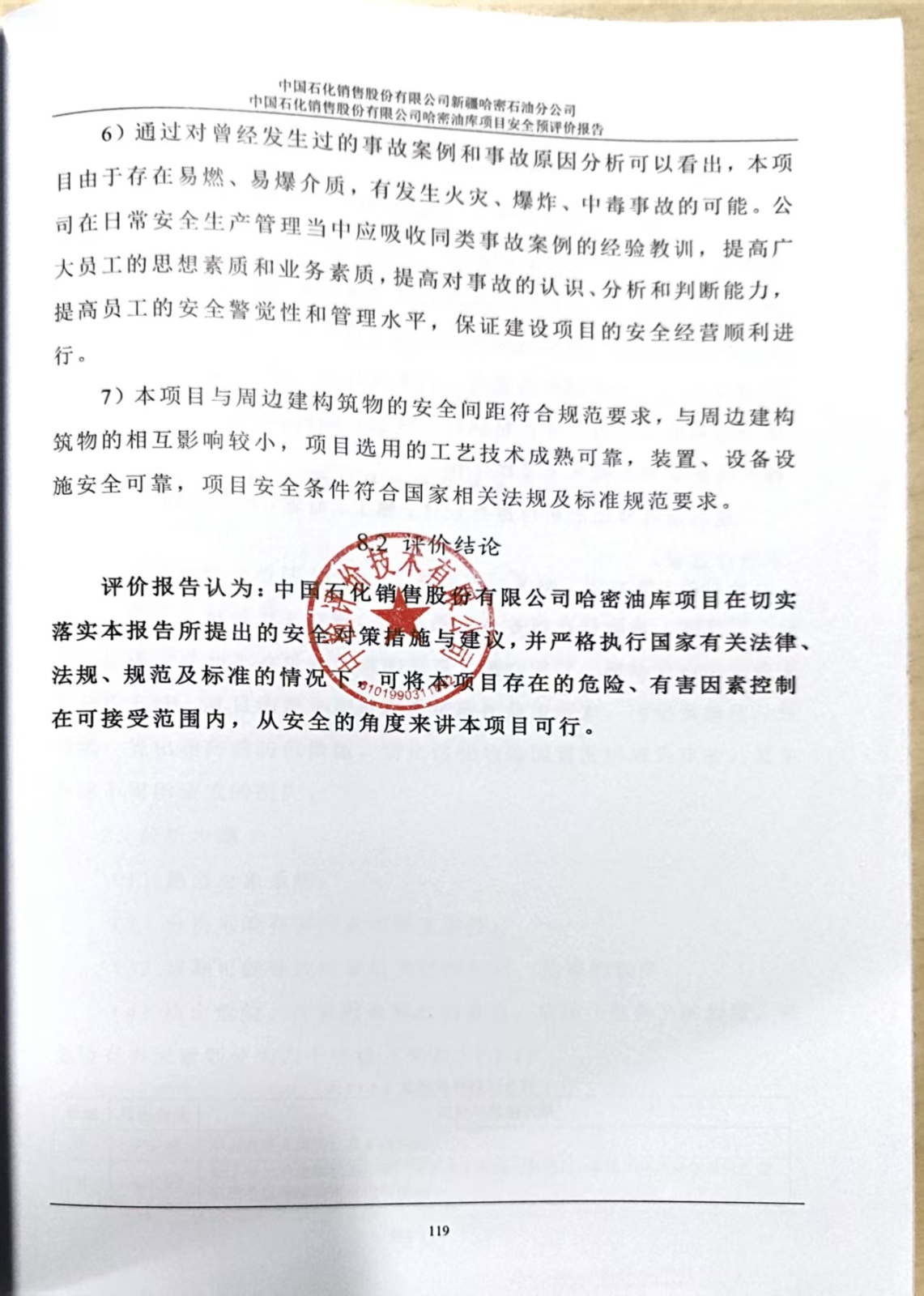 中国石化销售股份有限公司新疆哈密石油分公司中国石化销售股份有限公司哈密油库项目安全预评价报告