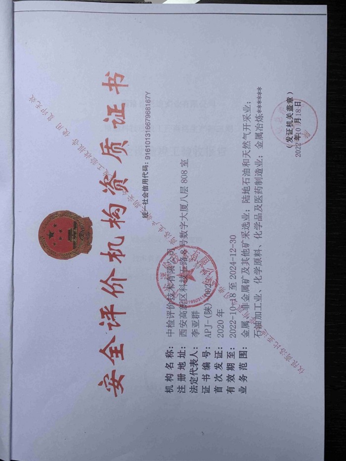 机构名称 | 中检评价技术有限公司 | 资质证号 | APJ-(陕)-002 | ||||
