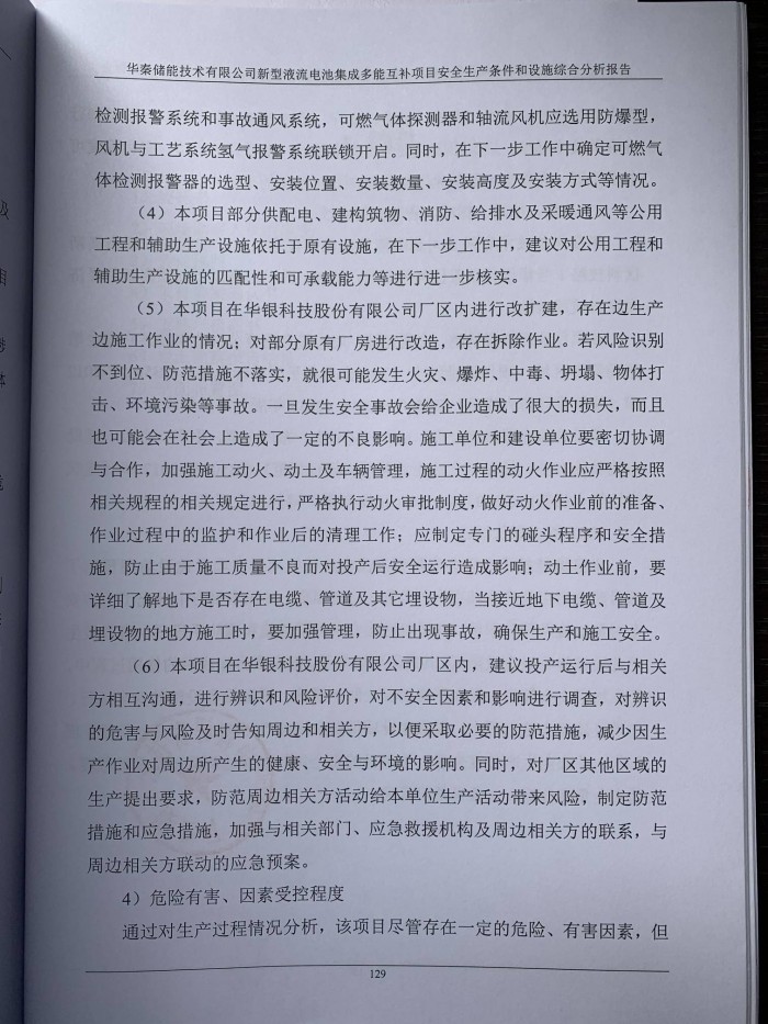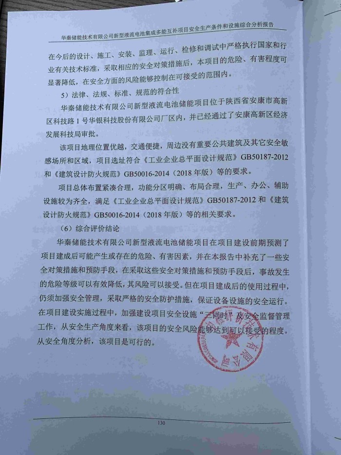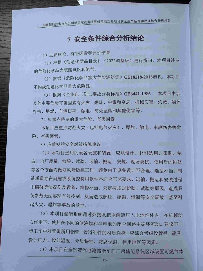 华秦储能技术有限公司新型液流电池集成多能互补项目 安全生产条件和设施综合分析报告