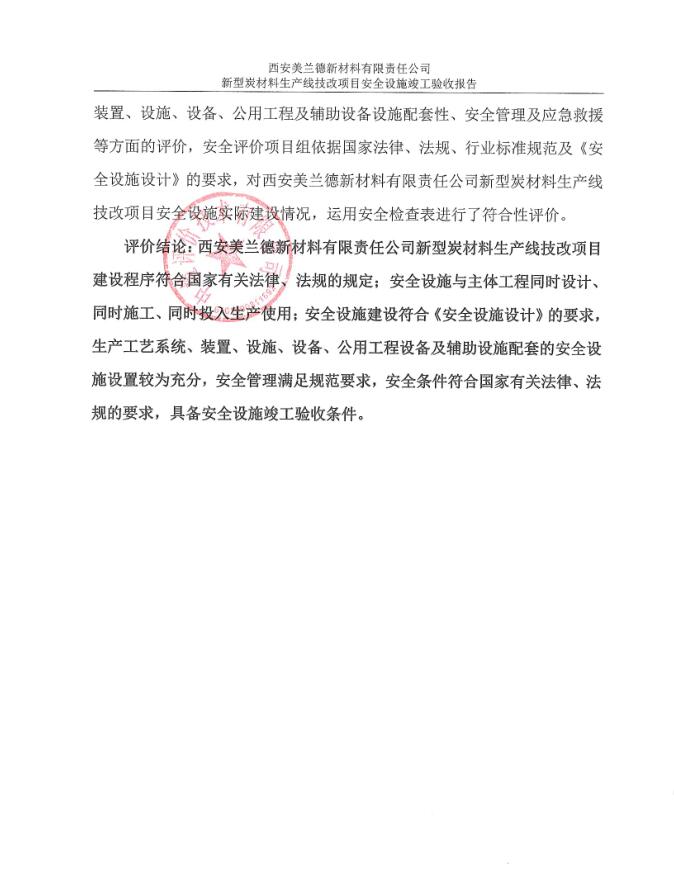 西安美兰德新材料有限责任公司新型炭材料生产线技改项目 安全设施竣工验收报告