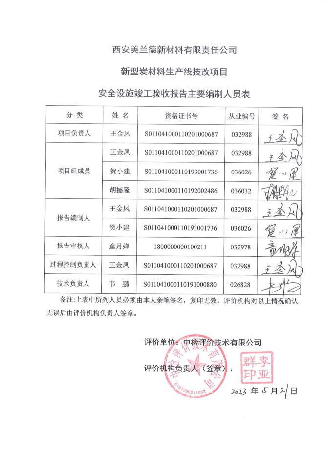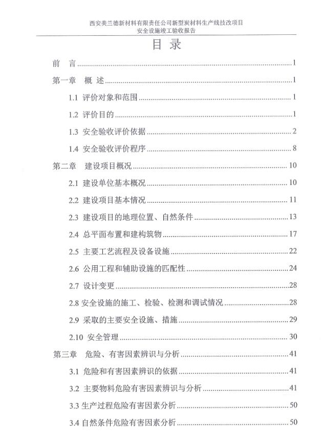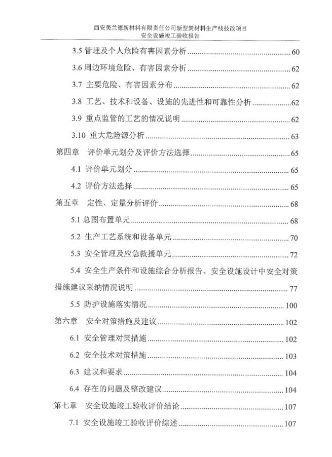 项目名称 | 西安美兰德新材料有限责任公司新型炭材料生产线技改项目 安全设施竣工验收报告 | ||||