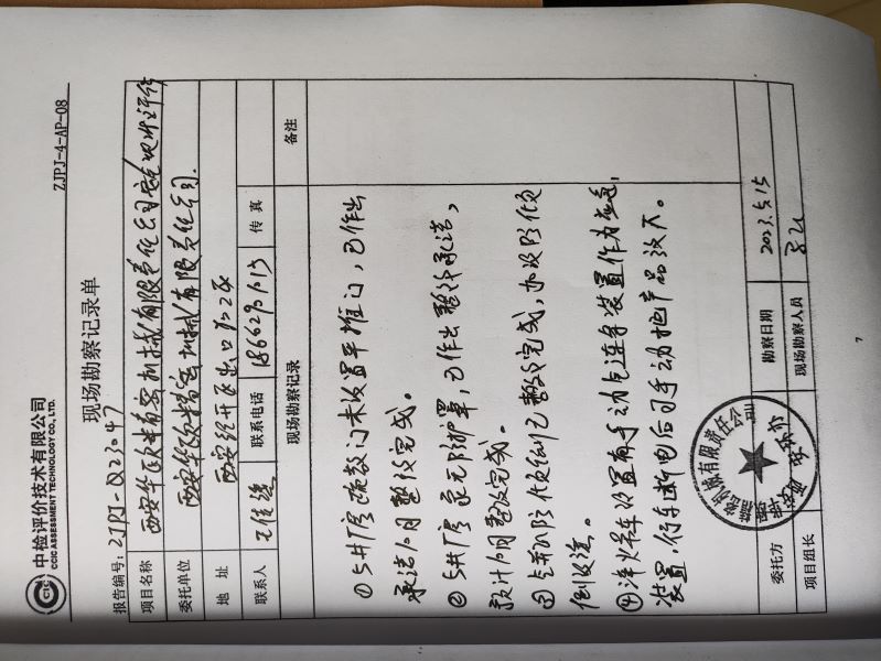 机构名称 | 中检评价技术有限公司 | 资质证号 | APJ-(陕)-002 | ||||