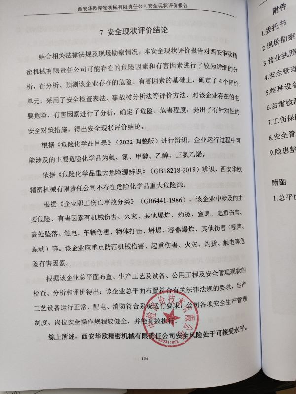 西安华欧精密机械有限责任公司安全现状评价