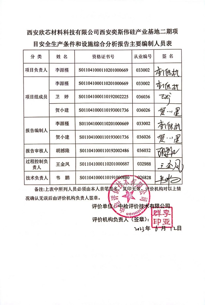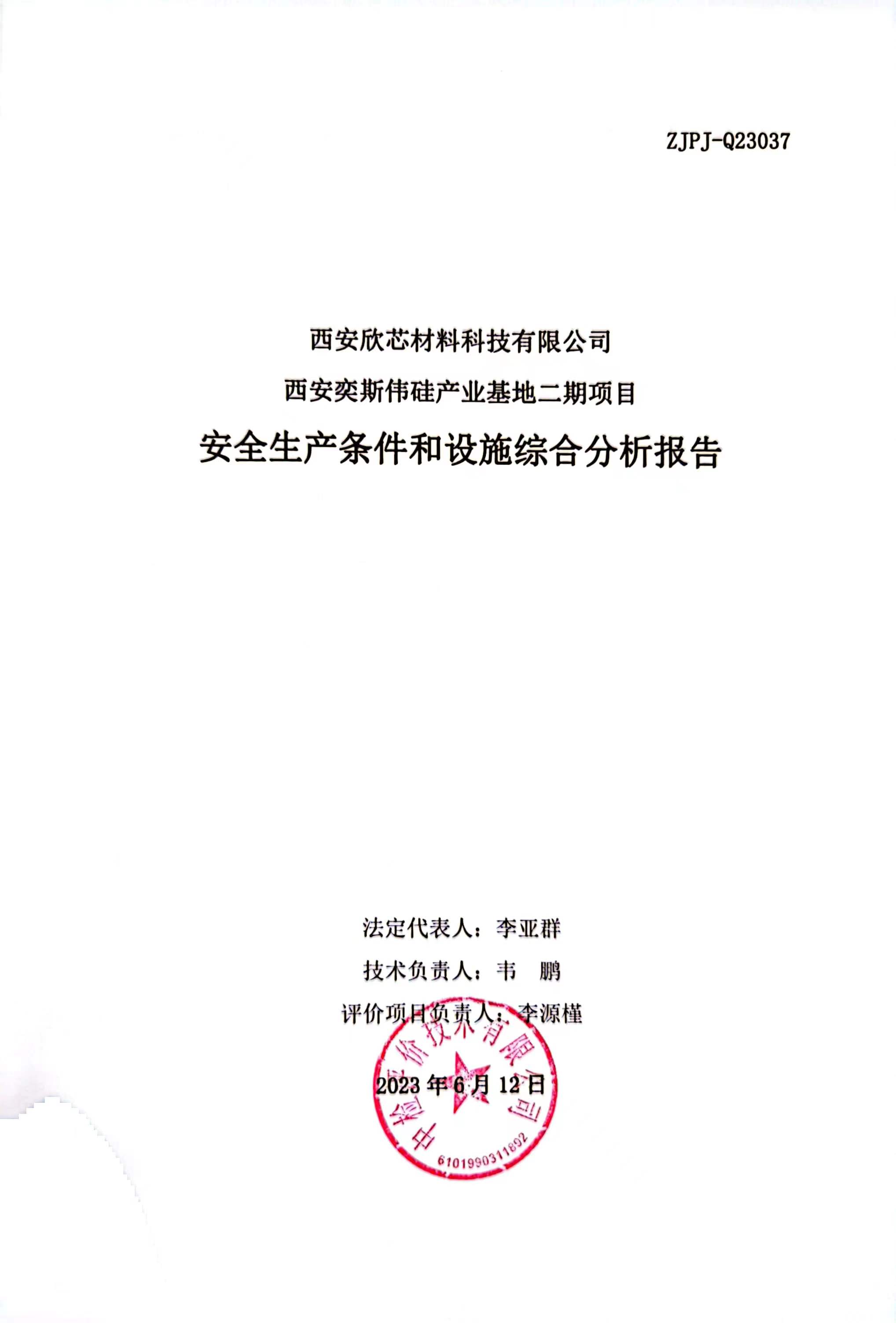 项目名称 | 西安欣芯材料科技有限公司西安奕斯伟硅产业基地二期项目安全生产条件和设施综合分析报告 | ||||||