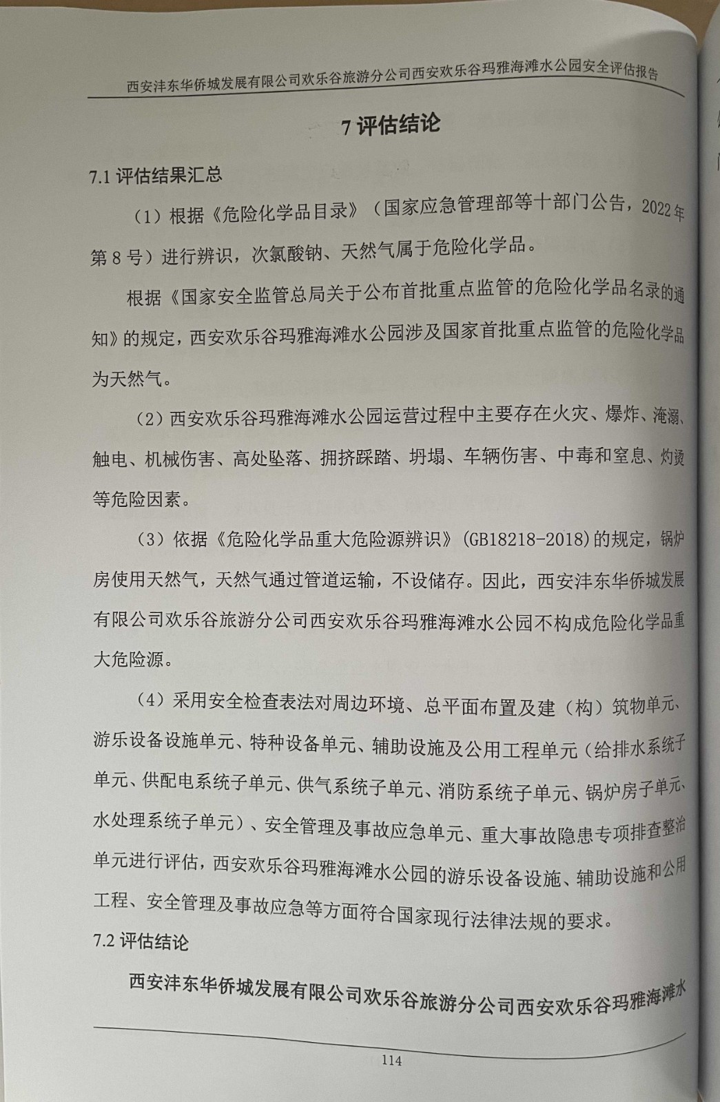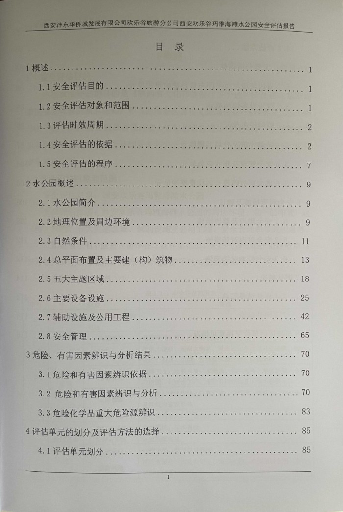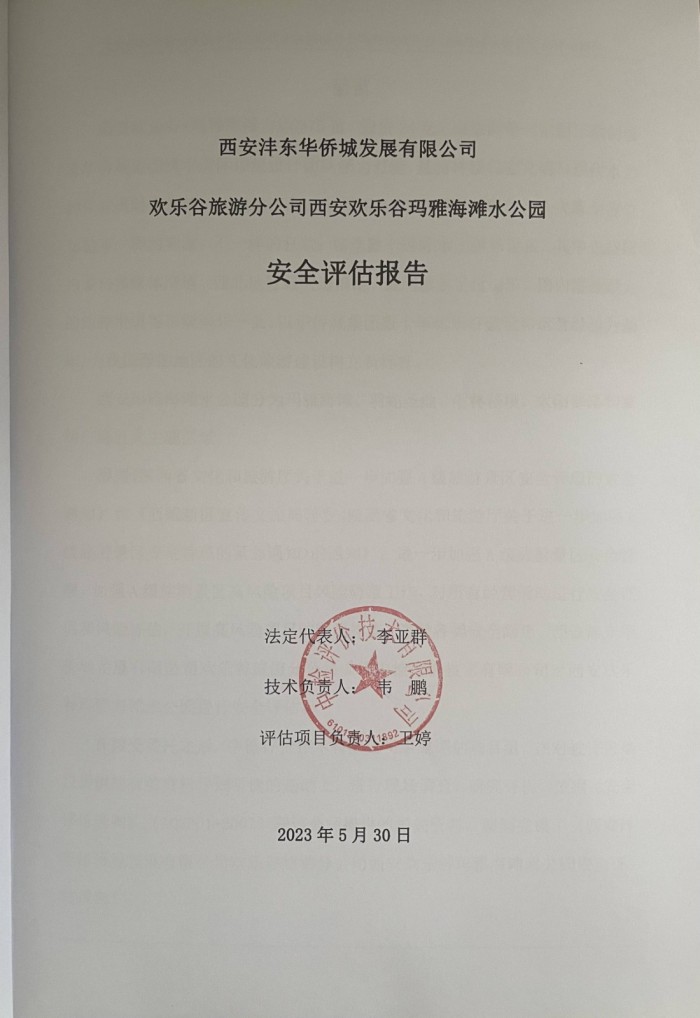西安沣东华侨城发展有限公司欢乐谷旅游分公司西安欢乐谷玛雅海滩水公园安全评估报告