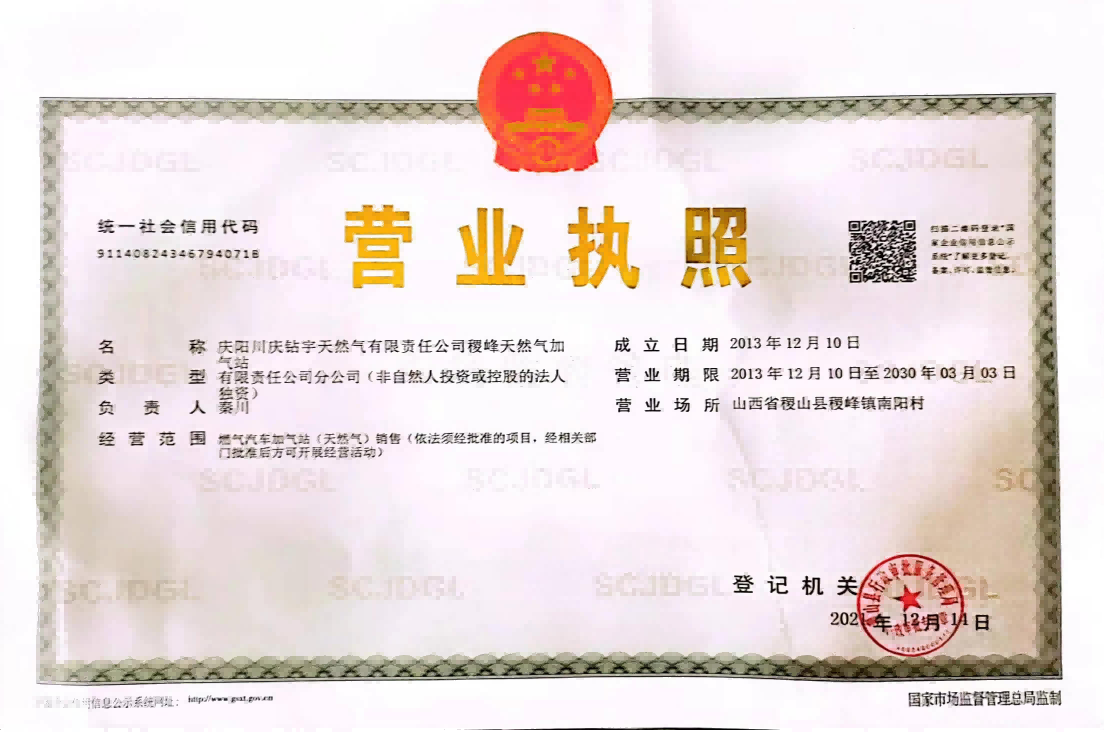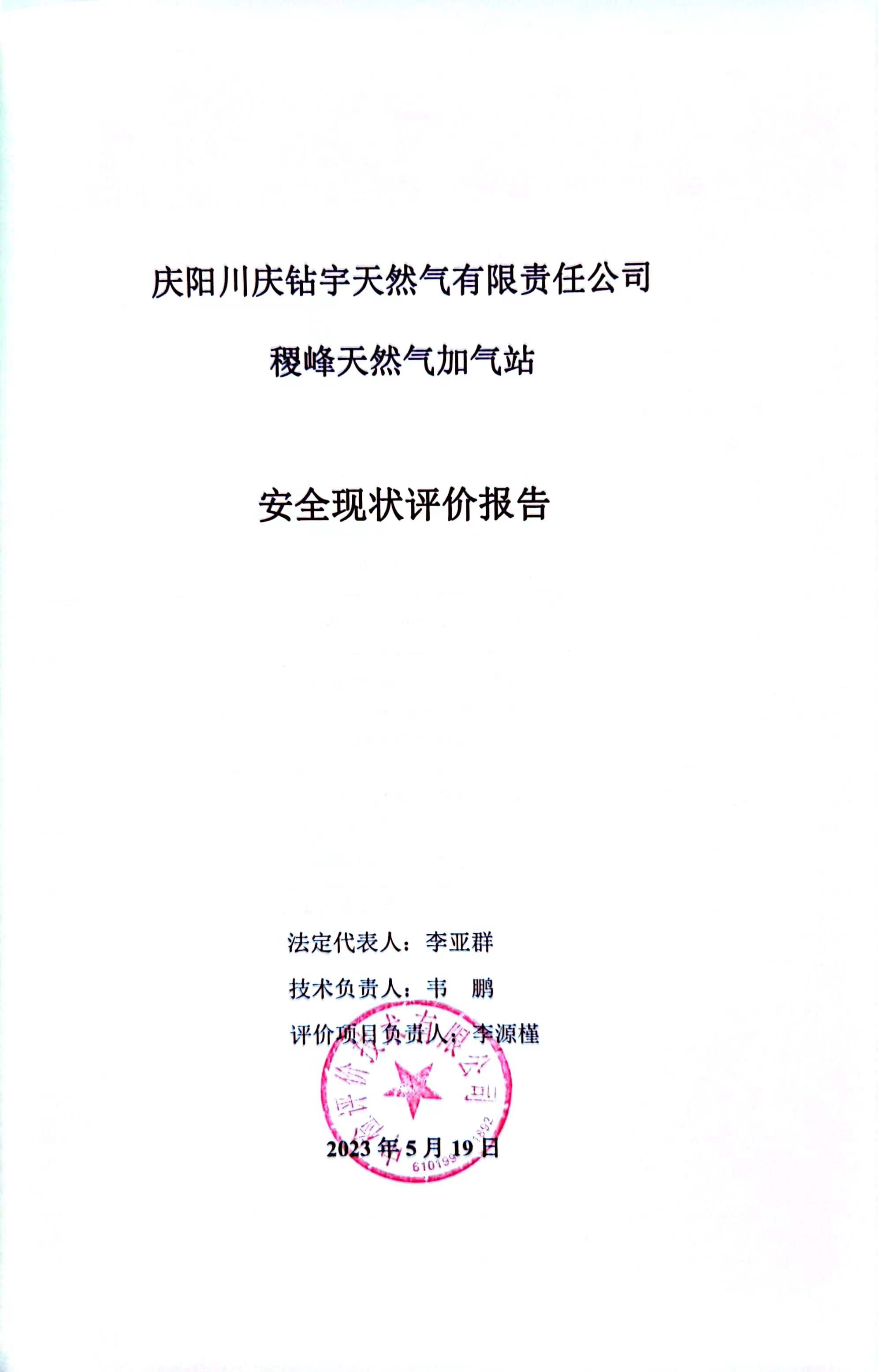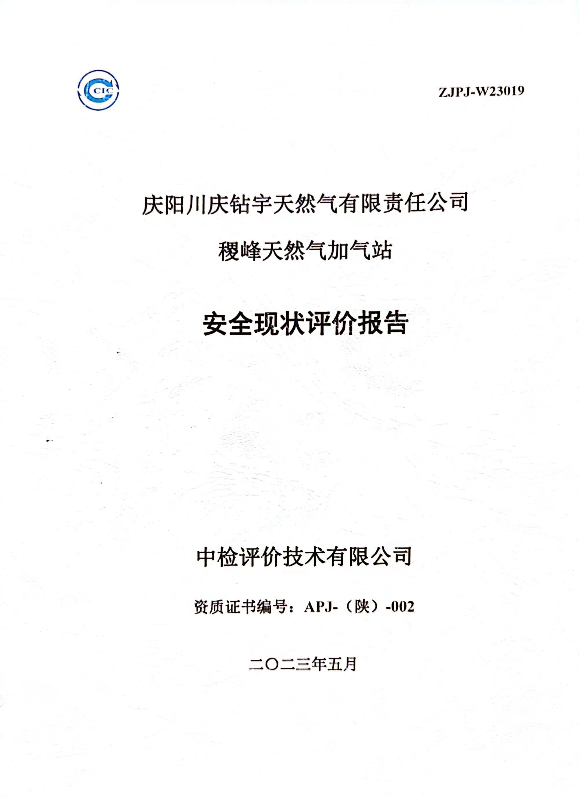 庆阳川庆钻宇天然气有限责任公司稷峰天然气加气站安全现状评价报告