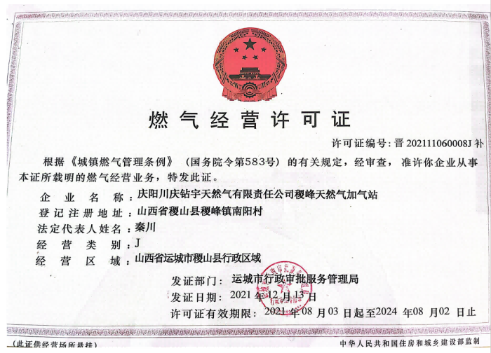项目简介 | 项目名称:庆阳川庆钻宇天然气有限责任公司稷峰天然气加气站 建设地点:山西省稷山县稷峰镇南阳村 负责人:秦川 建设内容及规模:站内设置1套LNG撬装设备(单套设备含1台水容积60m3的LNG低温储罐、2台LNG潜液泵、1台卸车增压器、1台EAG加热器)和2台LNG加注机。 | ||||||