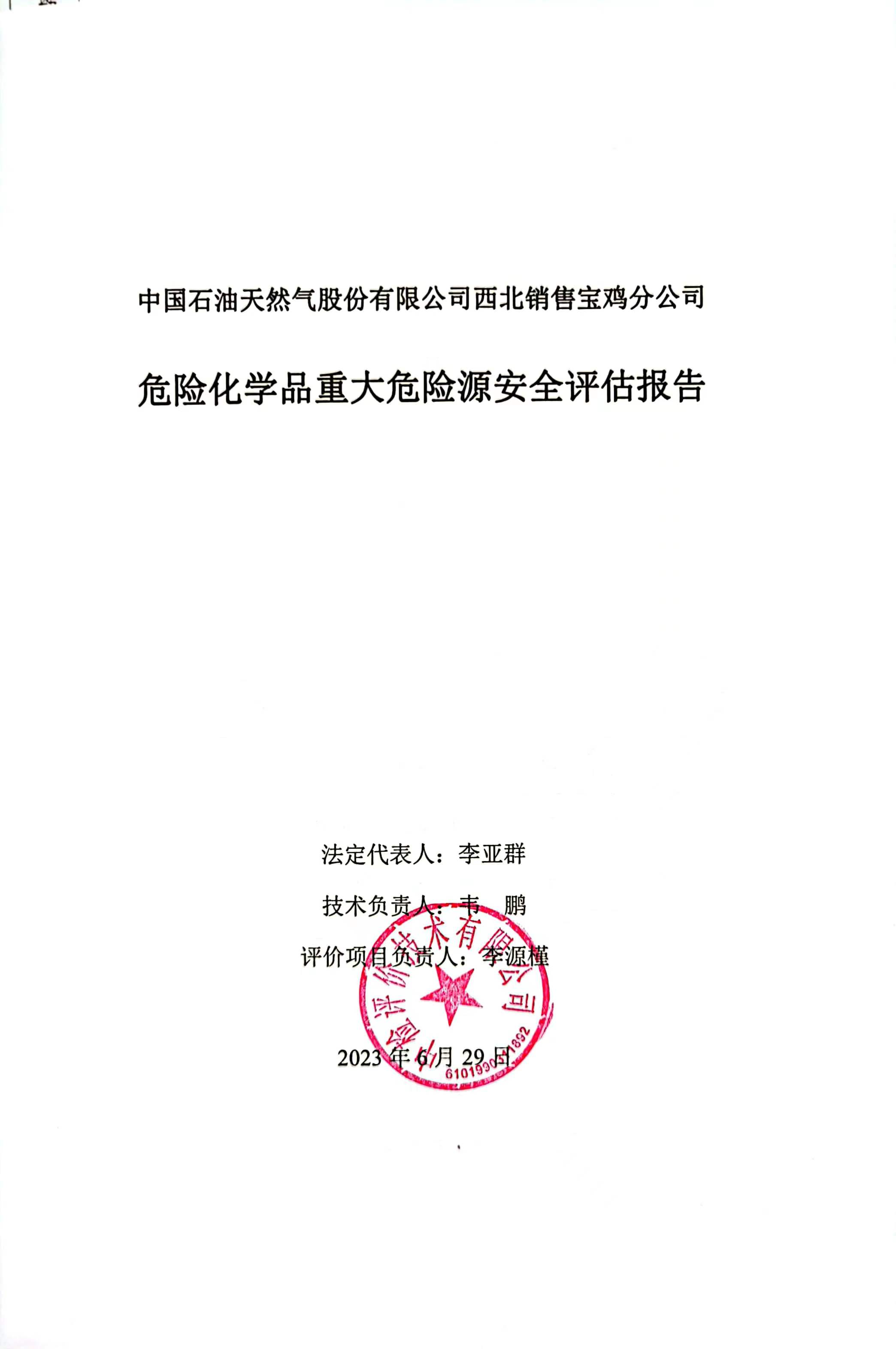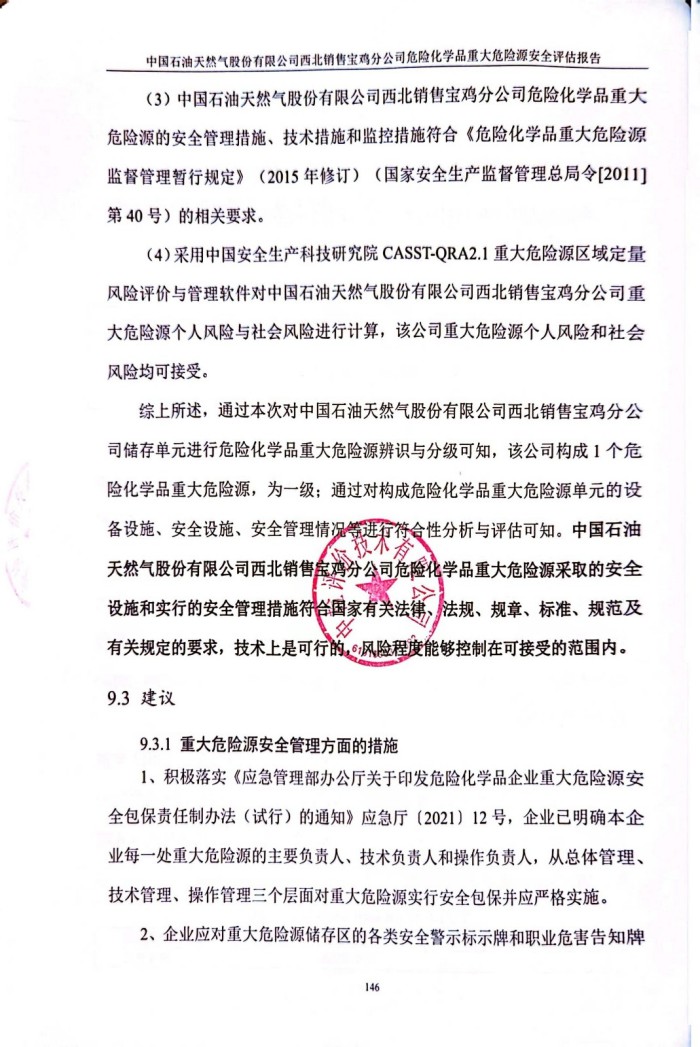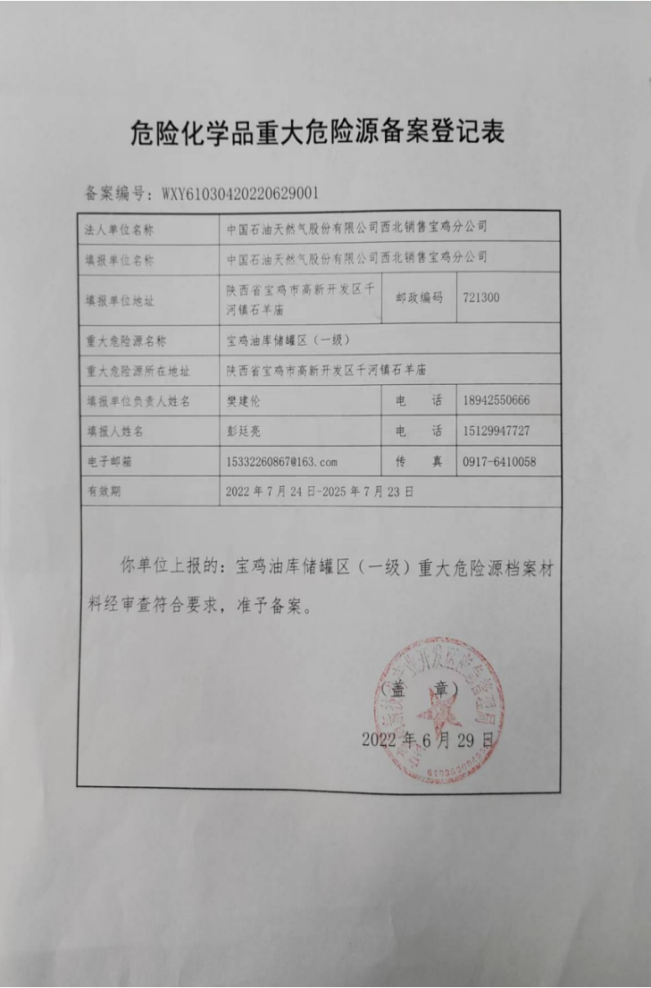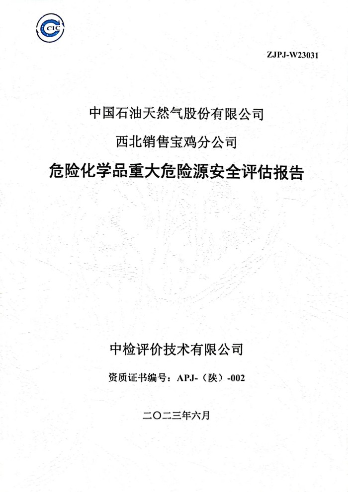 中国石油天然气股份有限公司西北销售宝鸡分公司危险化学品重大危险源安全评估报告