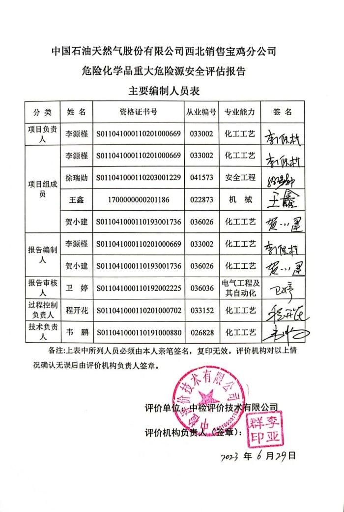 项目名称 | 中国石油天然气股份有限公司西北销售宝鸡分公司危险化学品重大危险源安全评估报告 | |||||