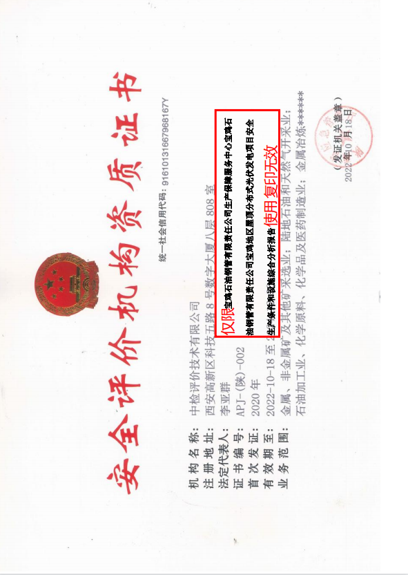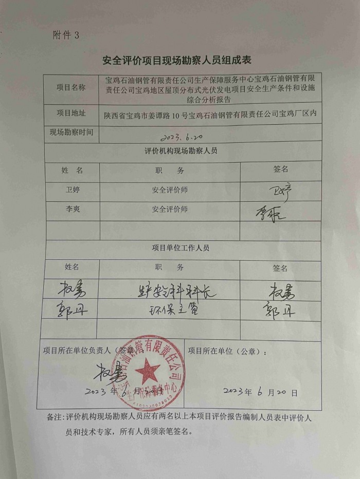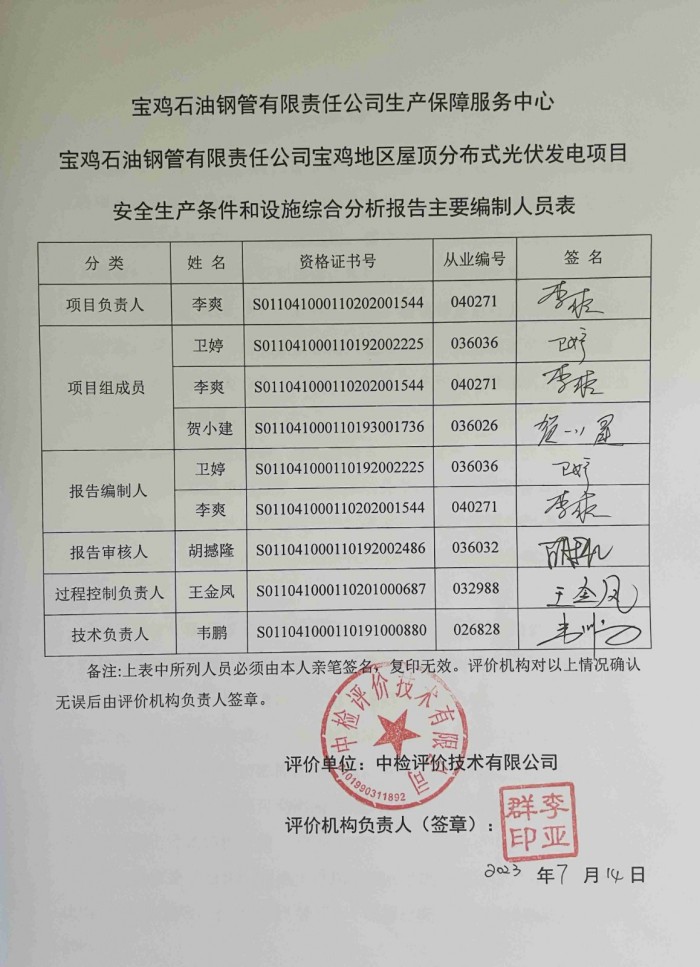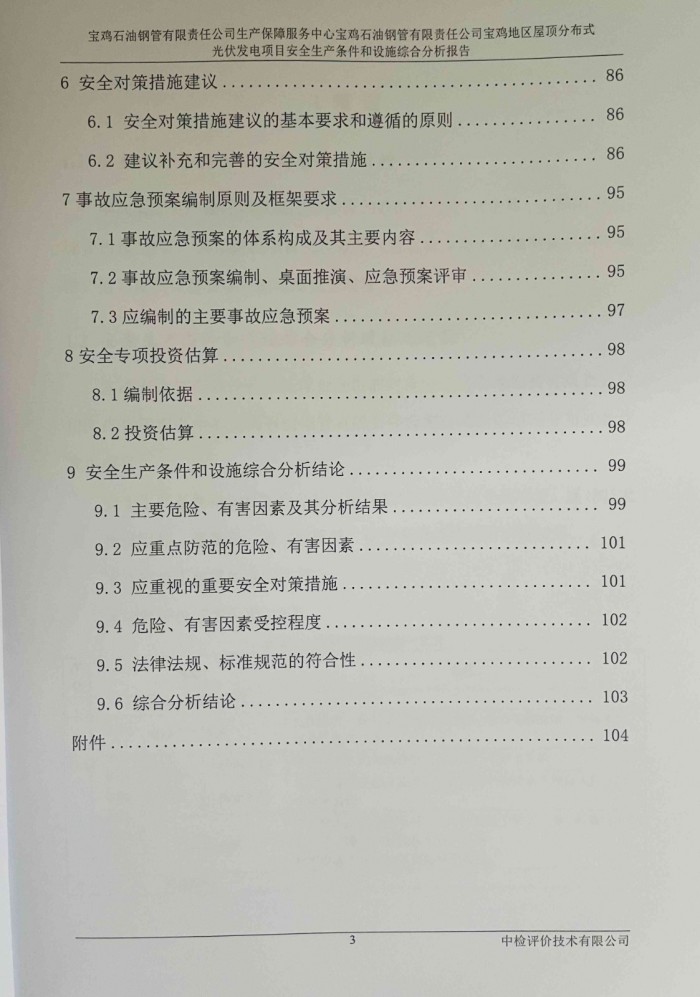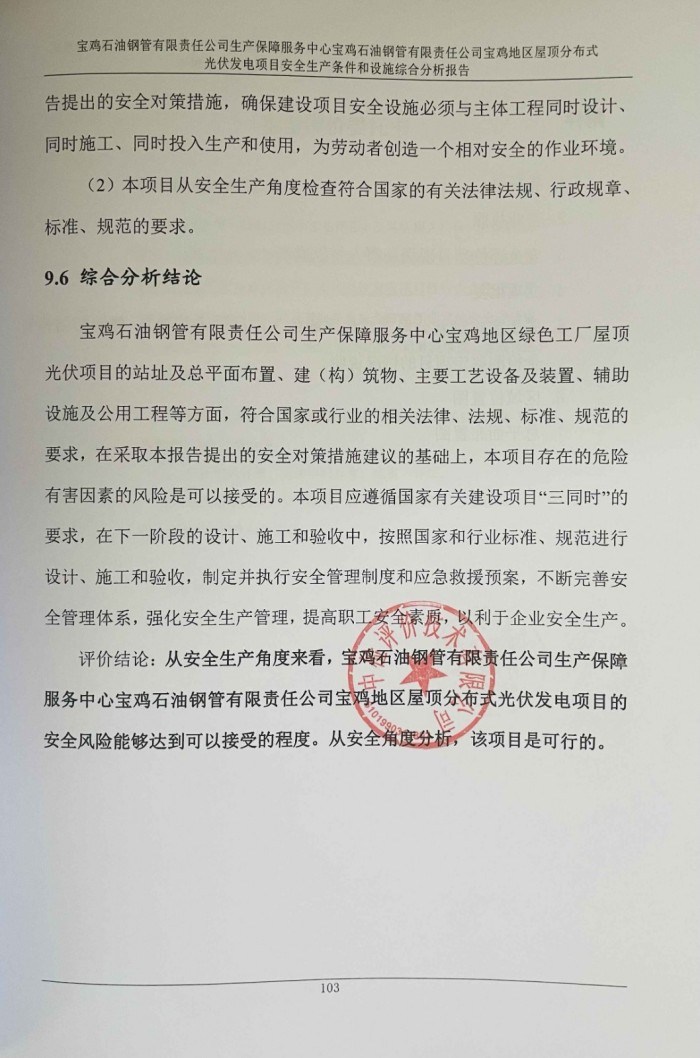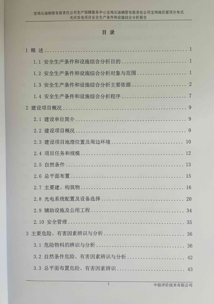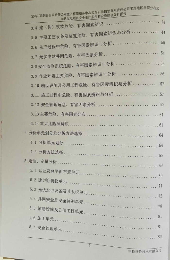 项目名称 | 宝鸡石油钢管有限责任公司生产保障服务中心宝鸡石油钢管有限责任公司宝鸡地区屋顶分布式光伏发电项目安全生产条件和设施综合分析报告 | ||||||