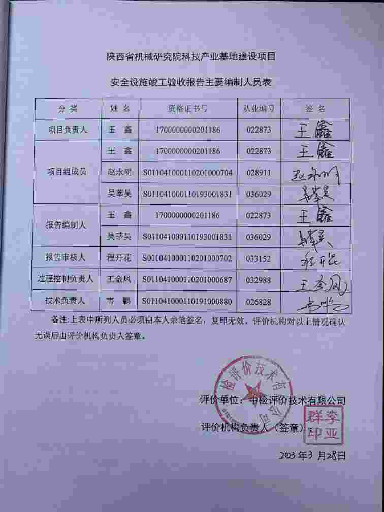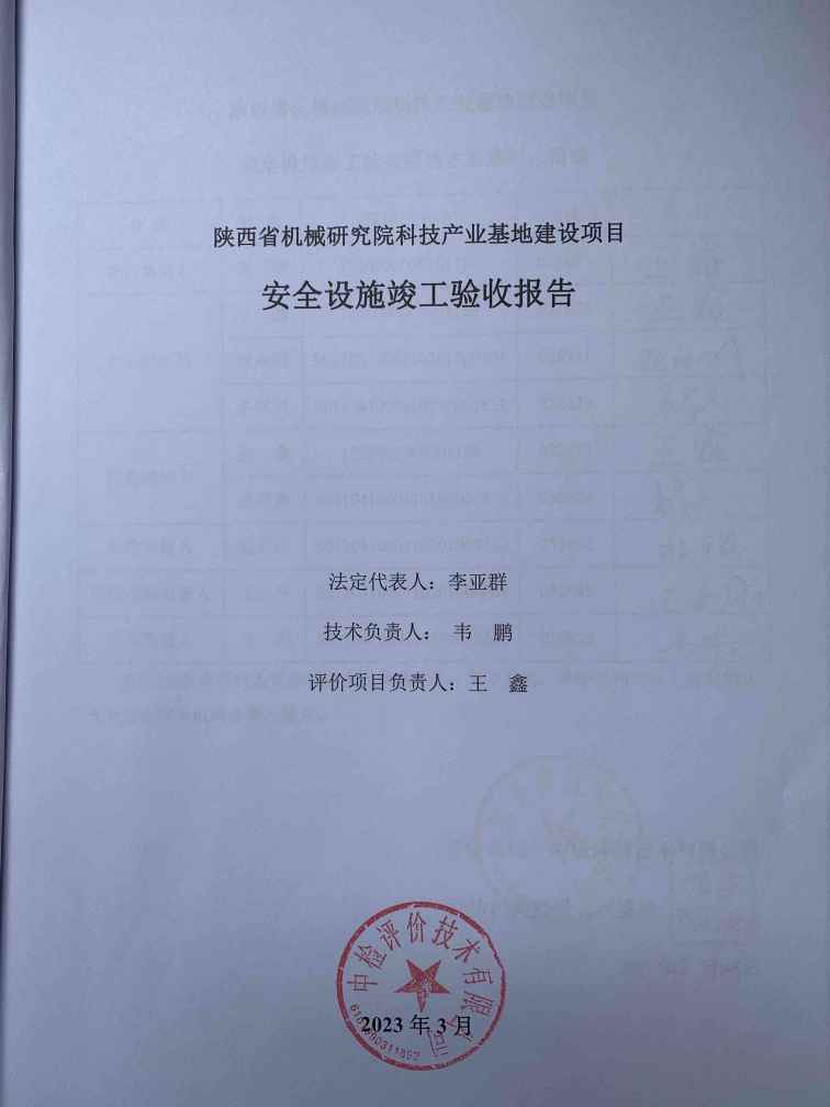 项目名称 | 陕西省机械研究院科技产业基地建设项目安全设施竣工验收 | ||||||