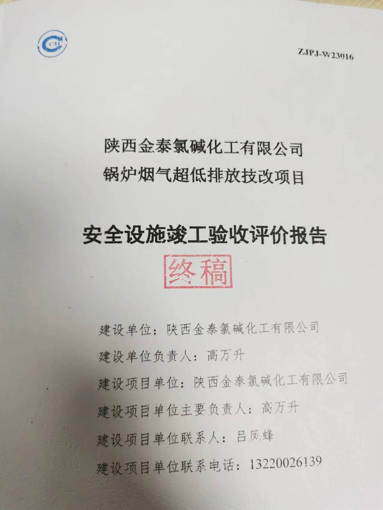 陕西金泰氯碱化工有限公司锅炉烟气超低排放技改项目安全设施竣工验收评价