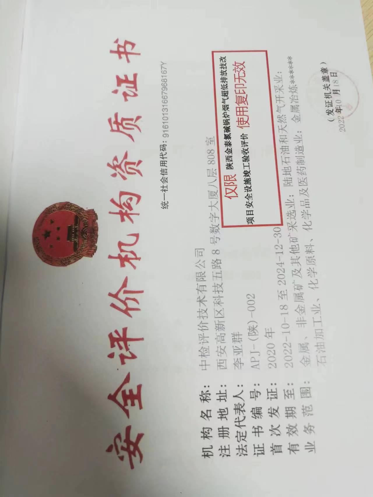 项目名称 | 陕西金泰氯碱化工有限公司锅炉烟气超低排放技改项目安全设施竣工验收评价 | ||||||