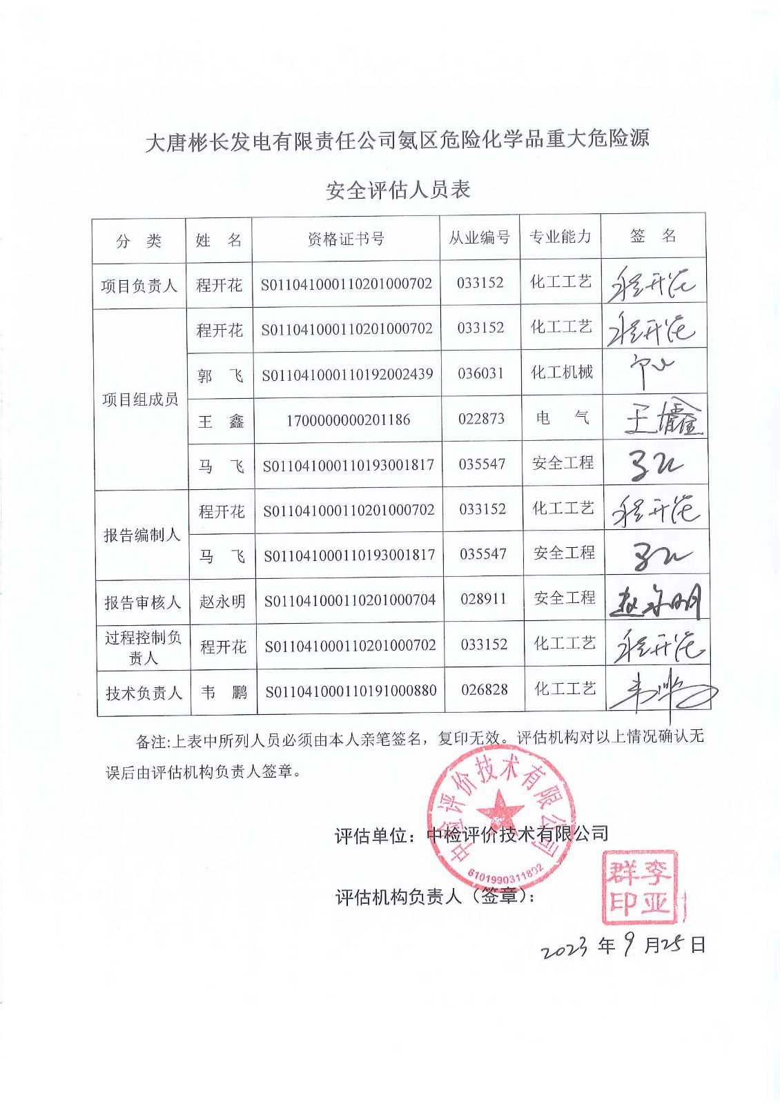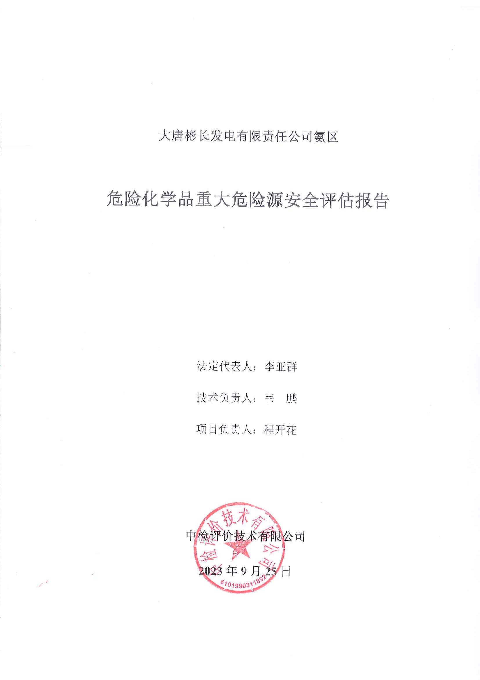 项目名称 | 大唐彬长发电有限责任公司氨区危险化学品重大危险源安全评估 | ||||||