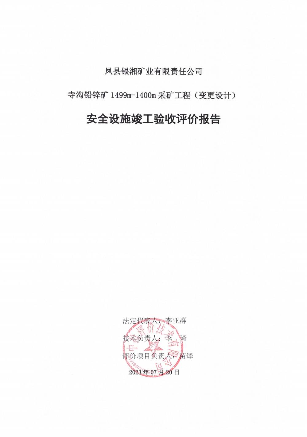 凤县银湘矿业有限责任公司寺沟铅锌矿1499m-1400m采矿工程(变更设计)安全设施竣工验收评价报告