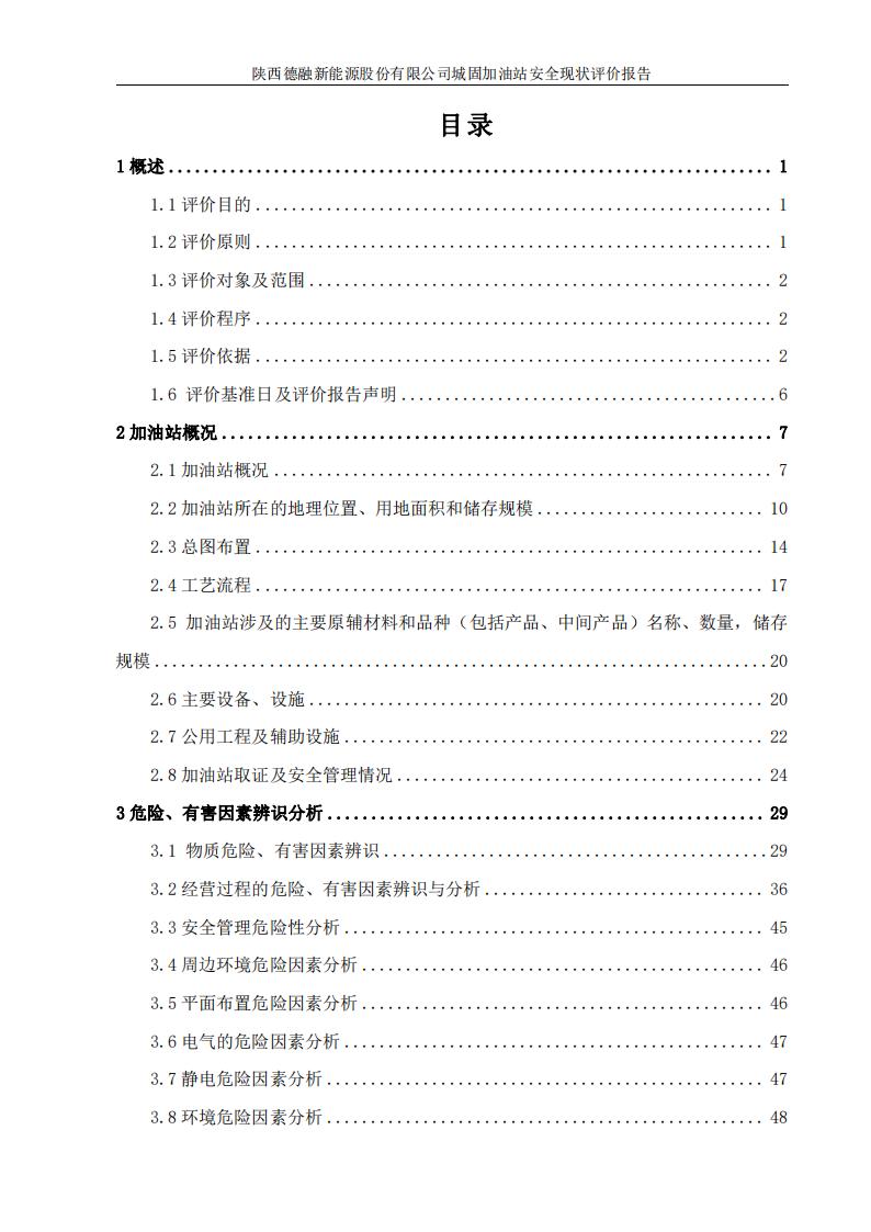 项目名称 | 陕西德融新能源股份有限公司城固加油站安全现状评价报告 | ||||||