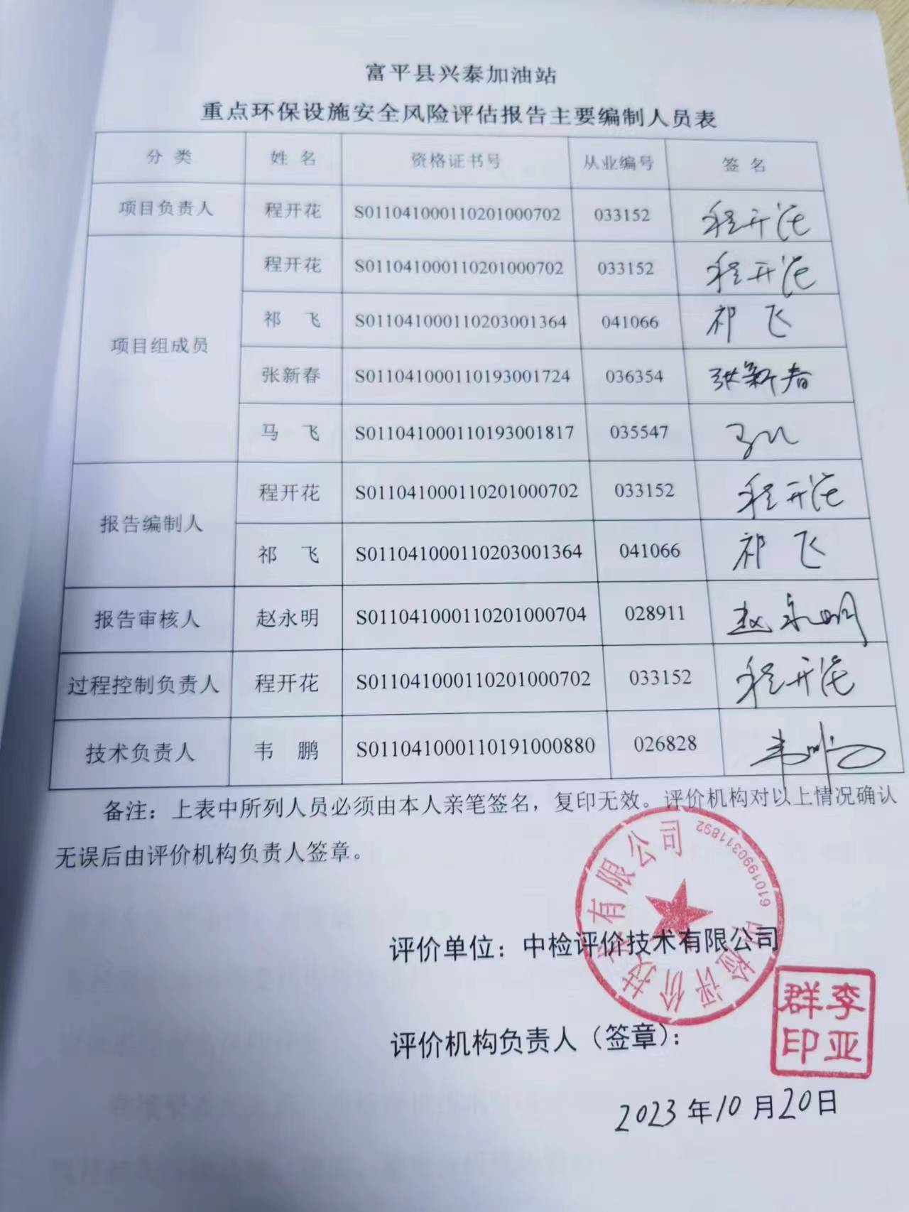 安全评价项目管理 | 项目组长 | 技术负责人 | 过程控制负责人 | ||||