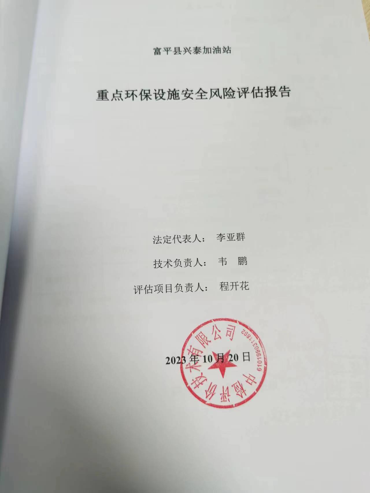 项目名称 | 富平县兴泰加油站重点环保设施安全风险评估报告 | ||||||