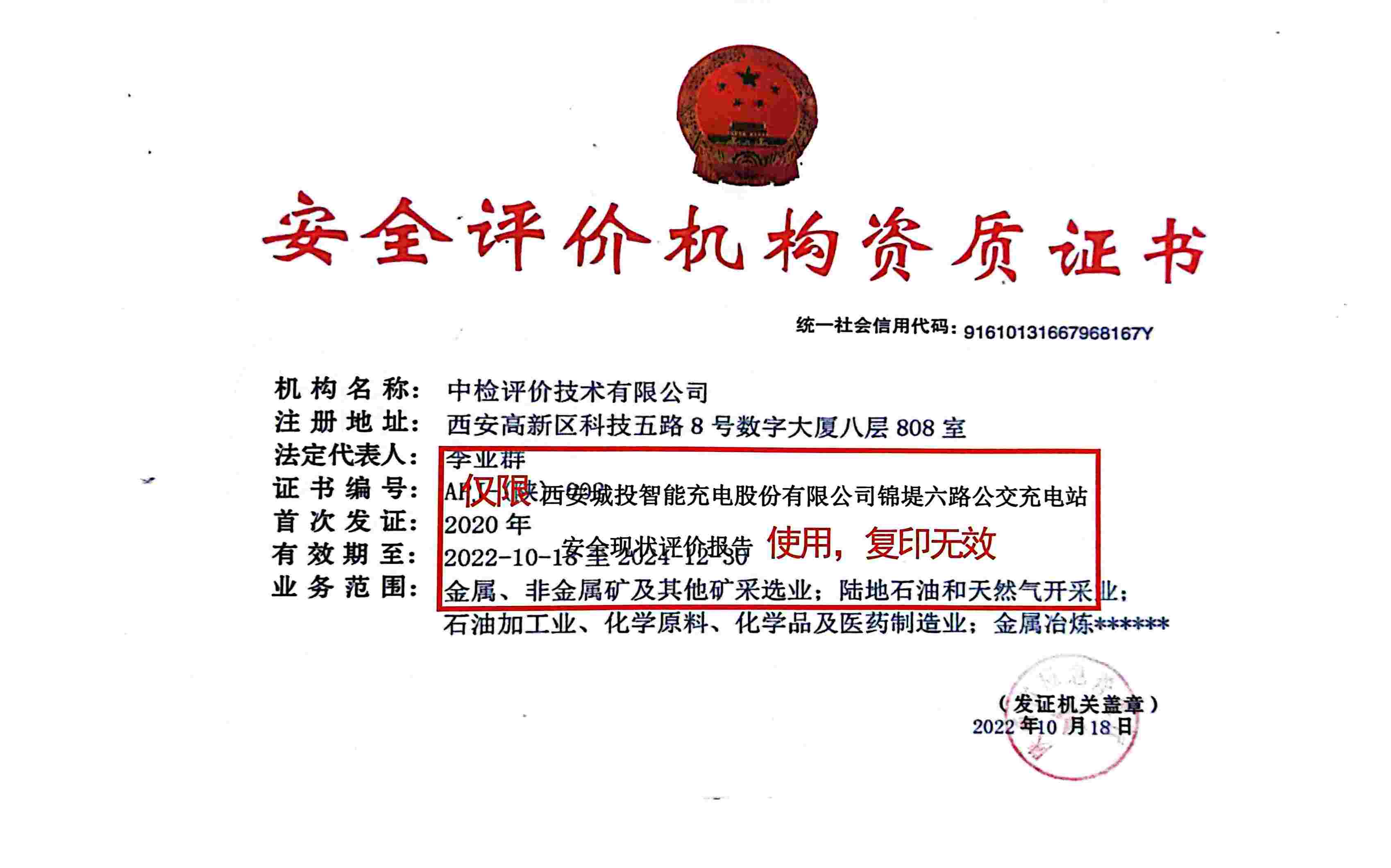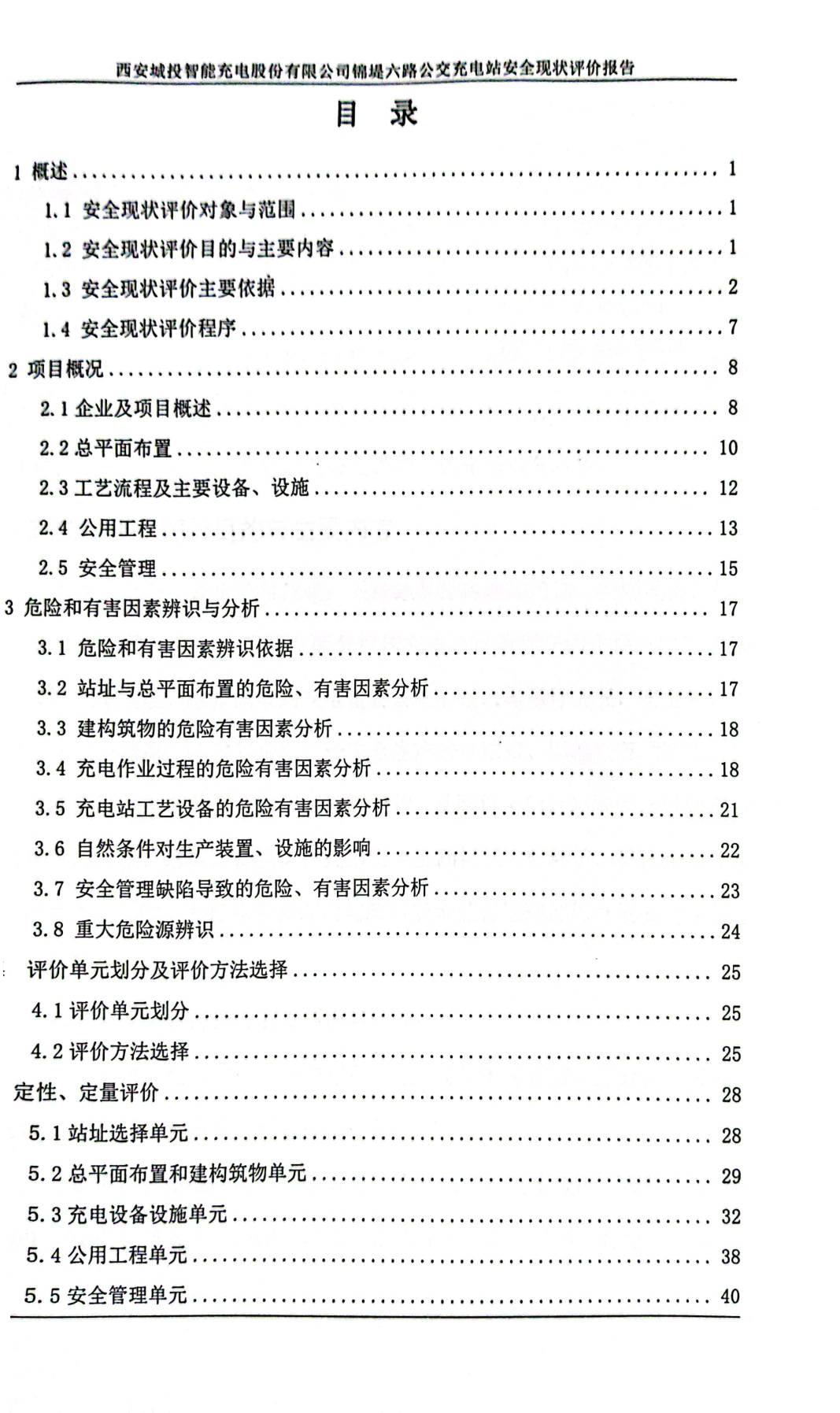 项目名称 | 西安城投智能充电股份有限公司锦堤六路公交充电站安全现状评价 | ||||||