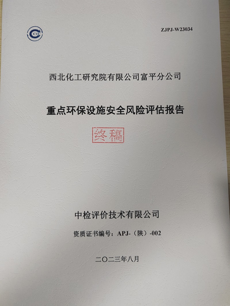 西北化工研究院有限公司富平分公司重点环保设施安全风险评估