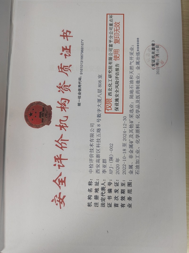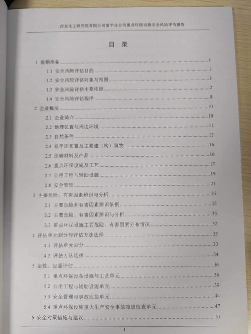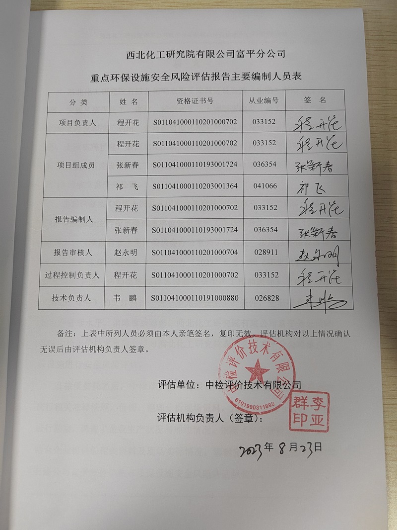 项目名称 | 西北化工研究院有限公司富平分公司重点环保设施安全风险评估 | ||||||