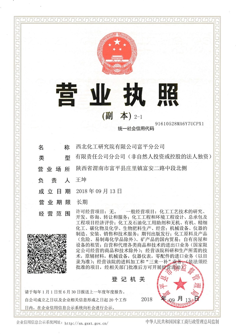 项目简介 | 西北化工研究院有限公司原有催化剂生产及实验基地位于西安市临潼区,无法实现扩建,故西北化工研究院有限公司投资资金在渭南市富平县庄里工业园区建设西北化工研究院科技产业园区建设项目,并于2018年9月13日成立富平分公司。 | ||||||