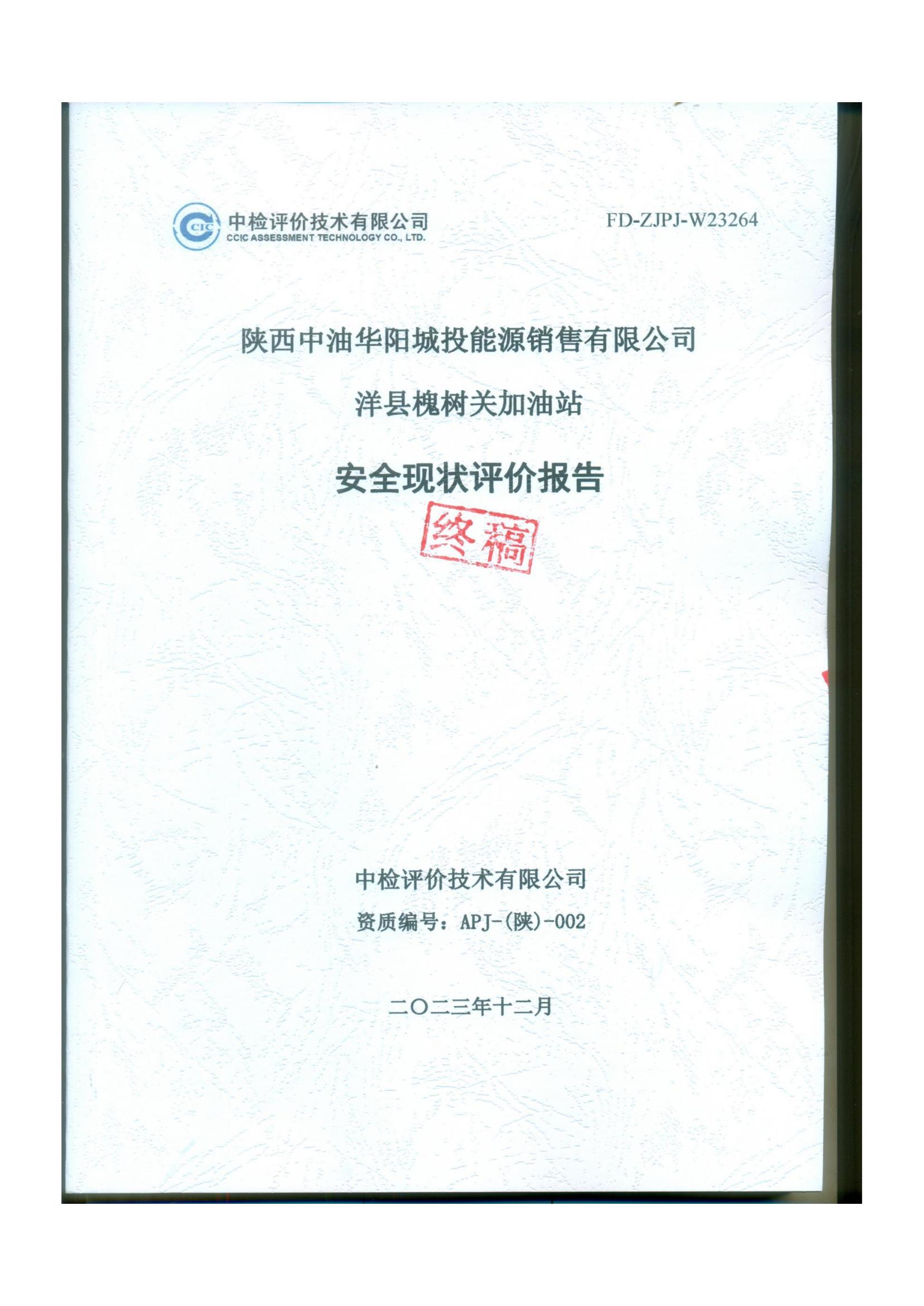 陕西中油华阳城投能源销售有限公司洋县槐树关加油站安全现状评价报告