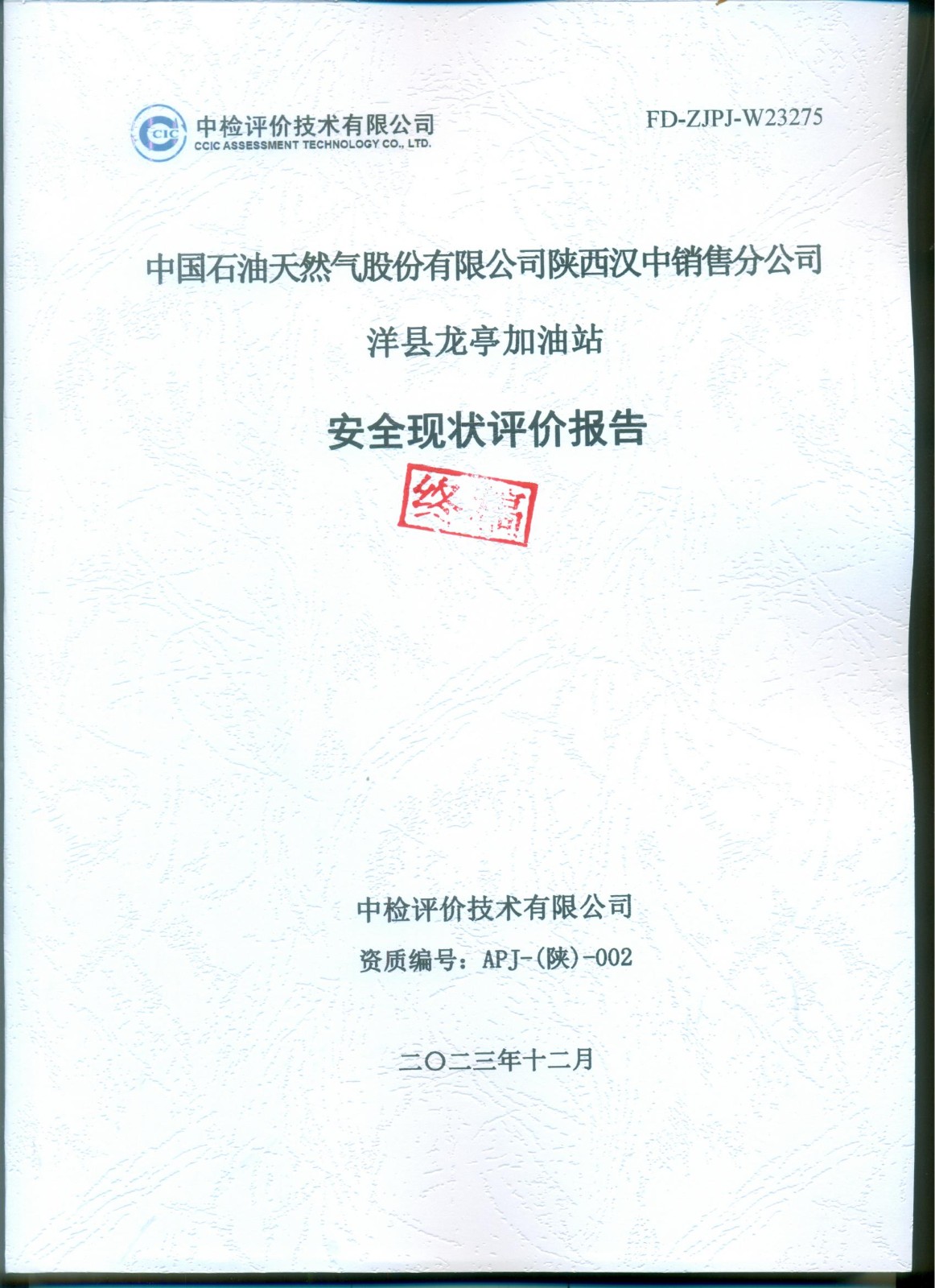 中国石油天然气股份有限公司陕西汉中销售分公司洋县龙亭加油站安全现状评价报告