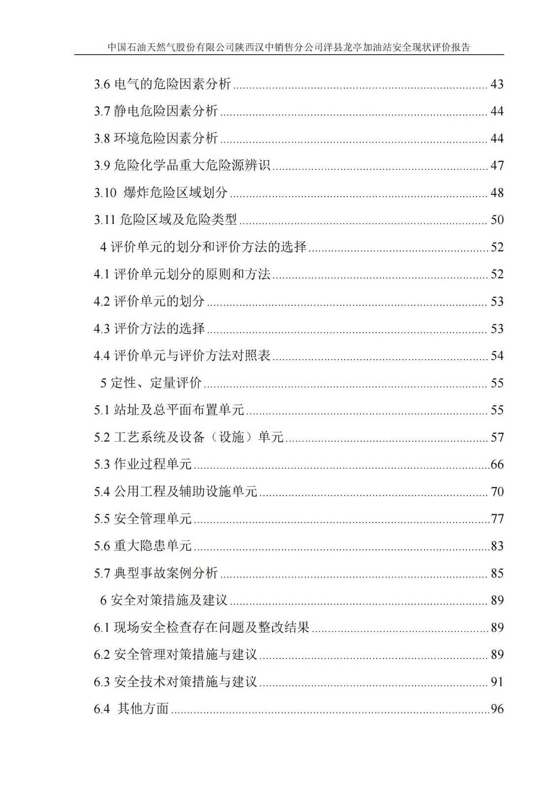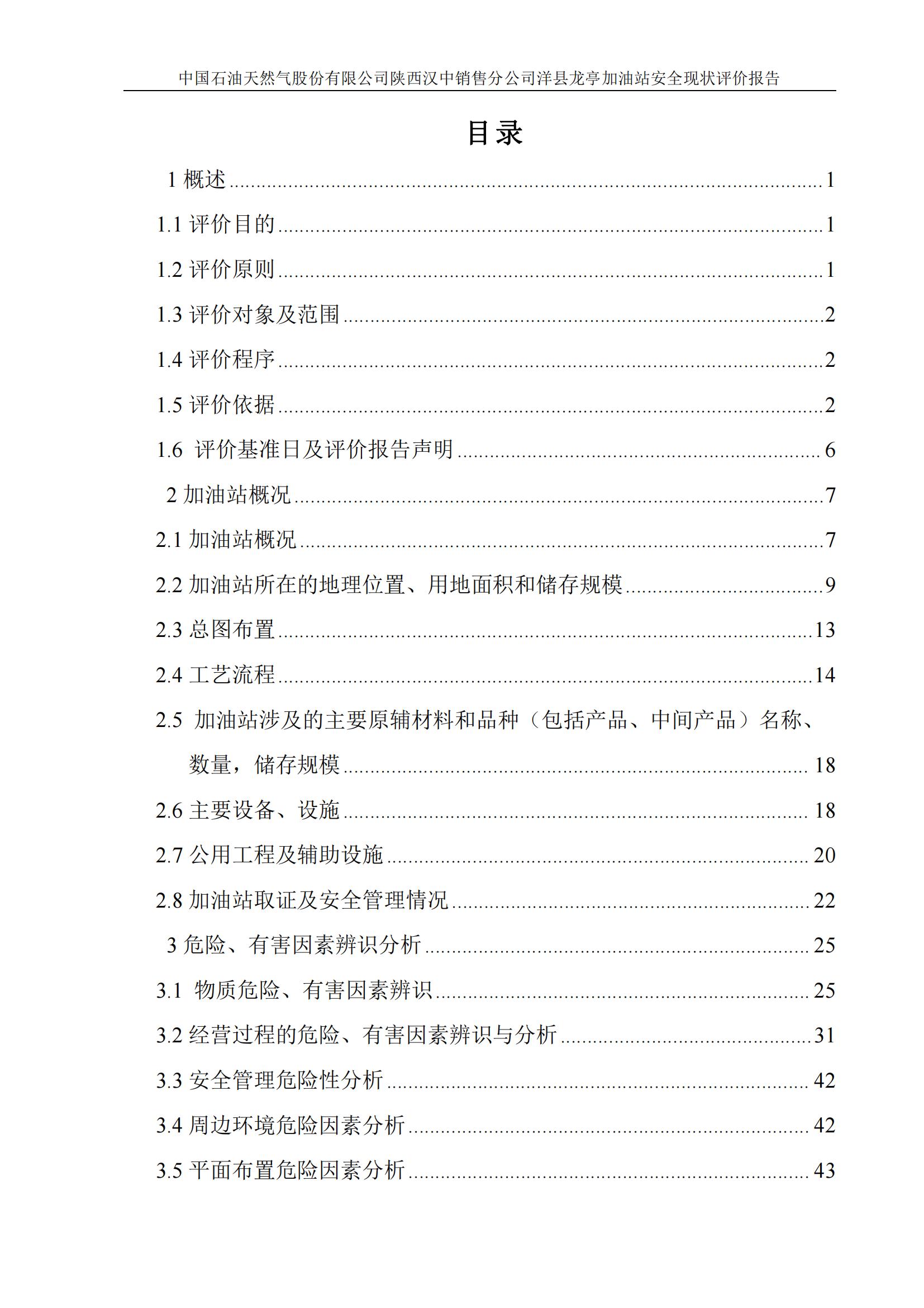 项目名称 | 中国石油天然气股份有限公司陕西汉中销售分公司洋县龙亭加油站安全现状评价报告 | ||||||