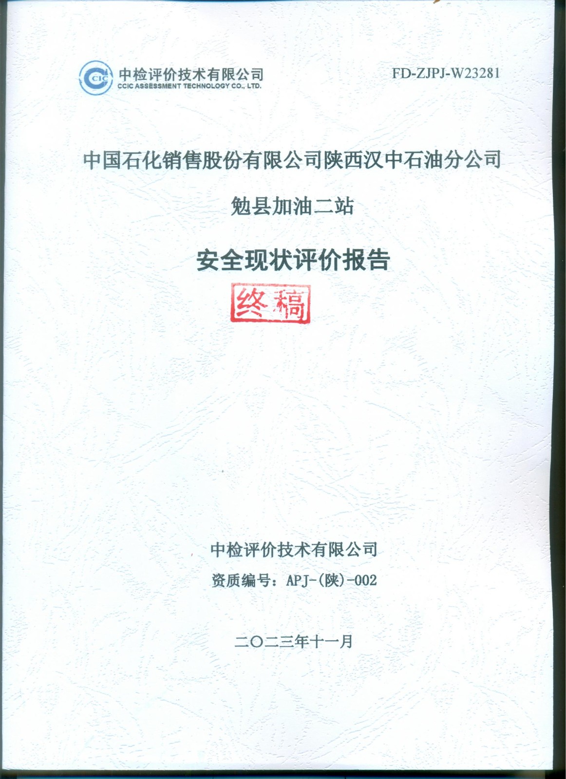 中国石化销售股份有限公司陕西汉中石油分公司勉县加油二站安全现状评价报告