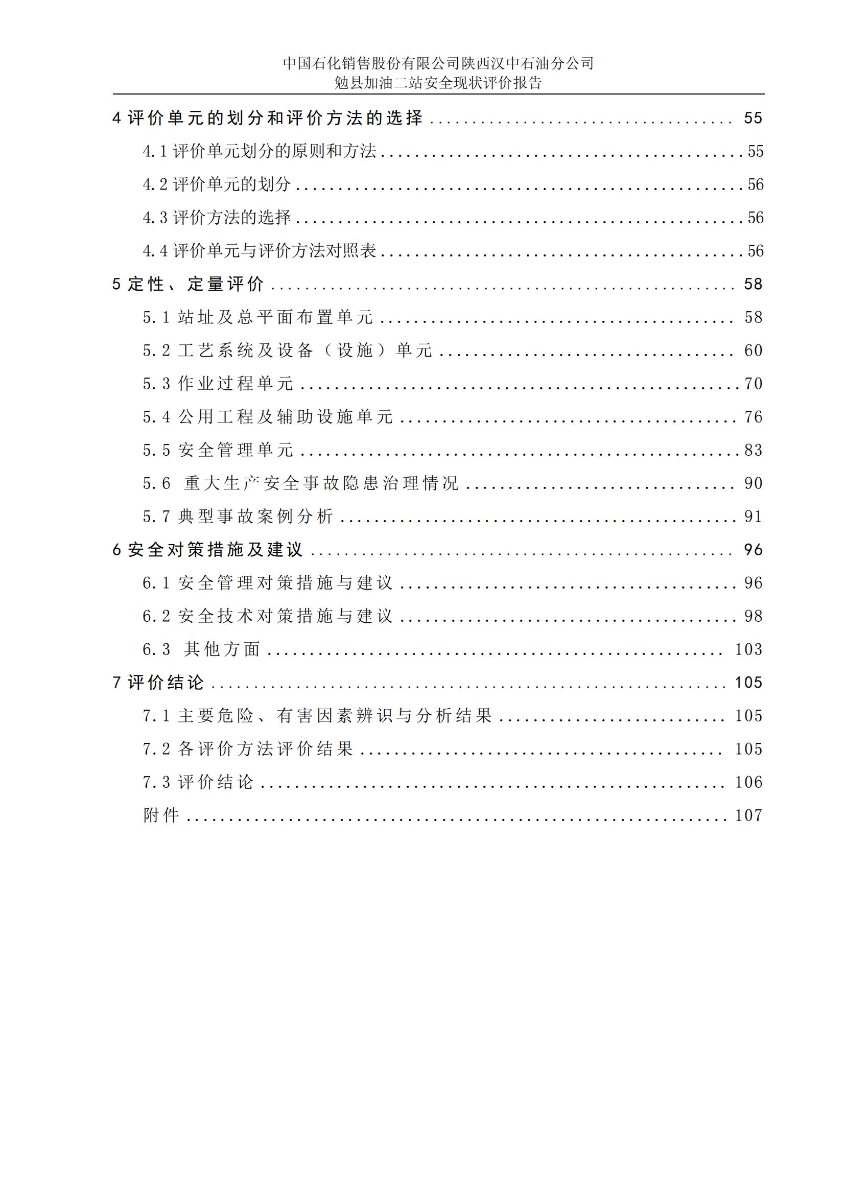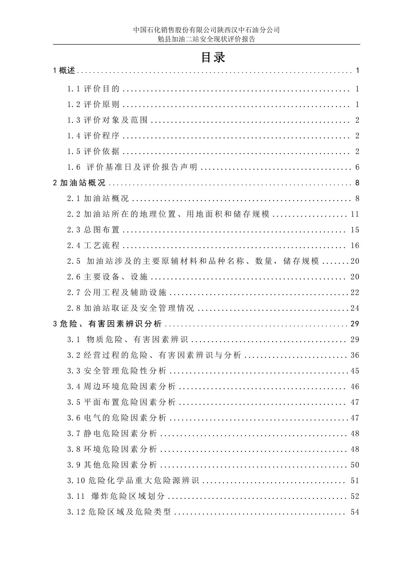 项目名称 | 中国石化销售股份有限公司陕西汉中石油分公司 勉县加油二站安全现状评价报告 | ||||||