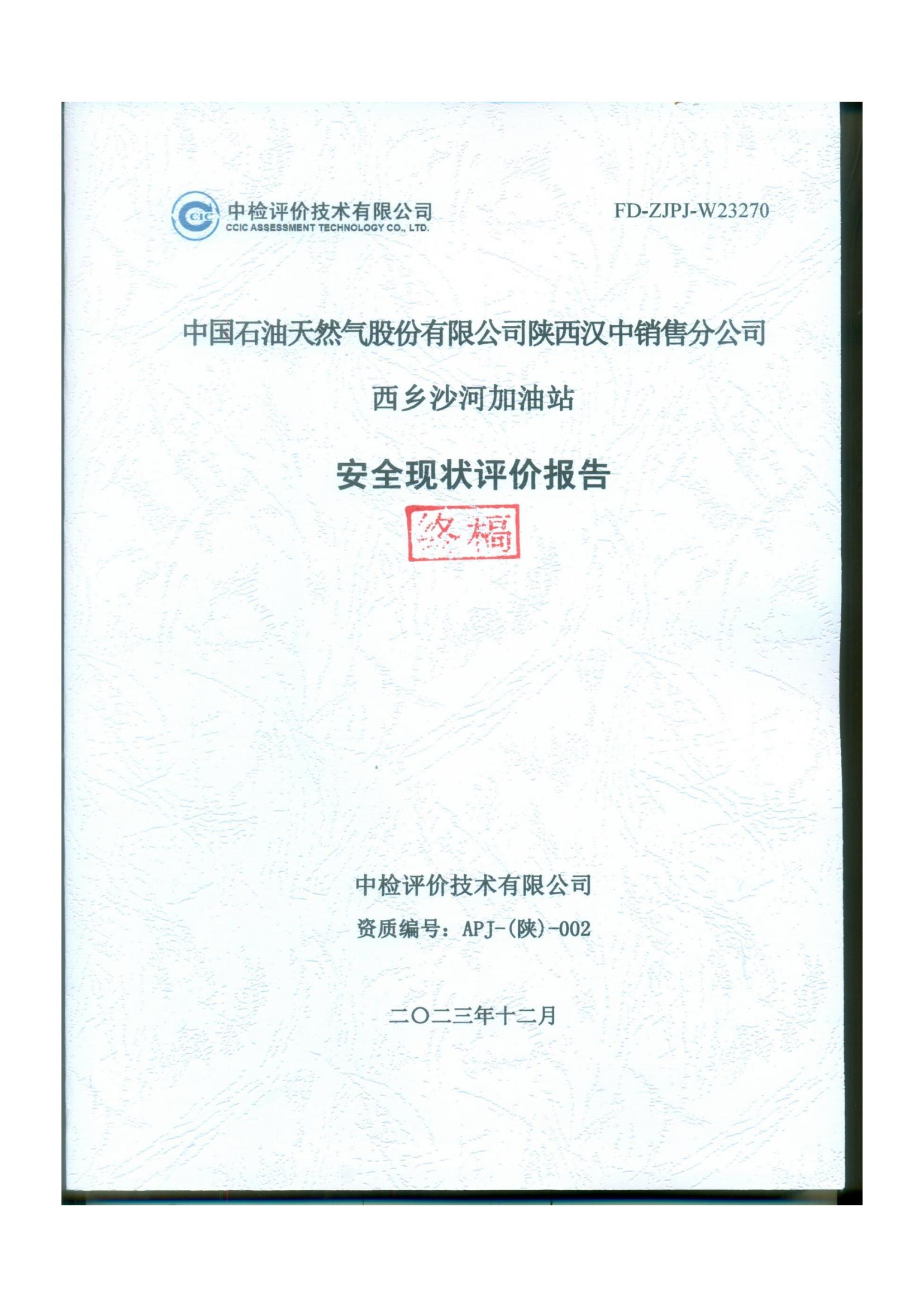 中国石油天然气股份有限公司陕西汉中销售分公司西乡沙河加油站安全现状评价报告