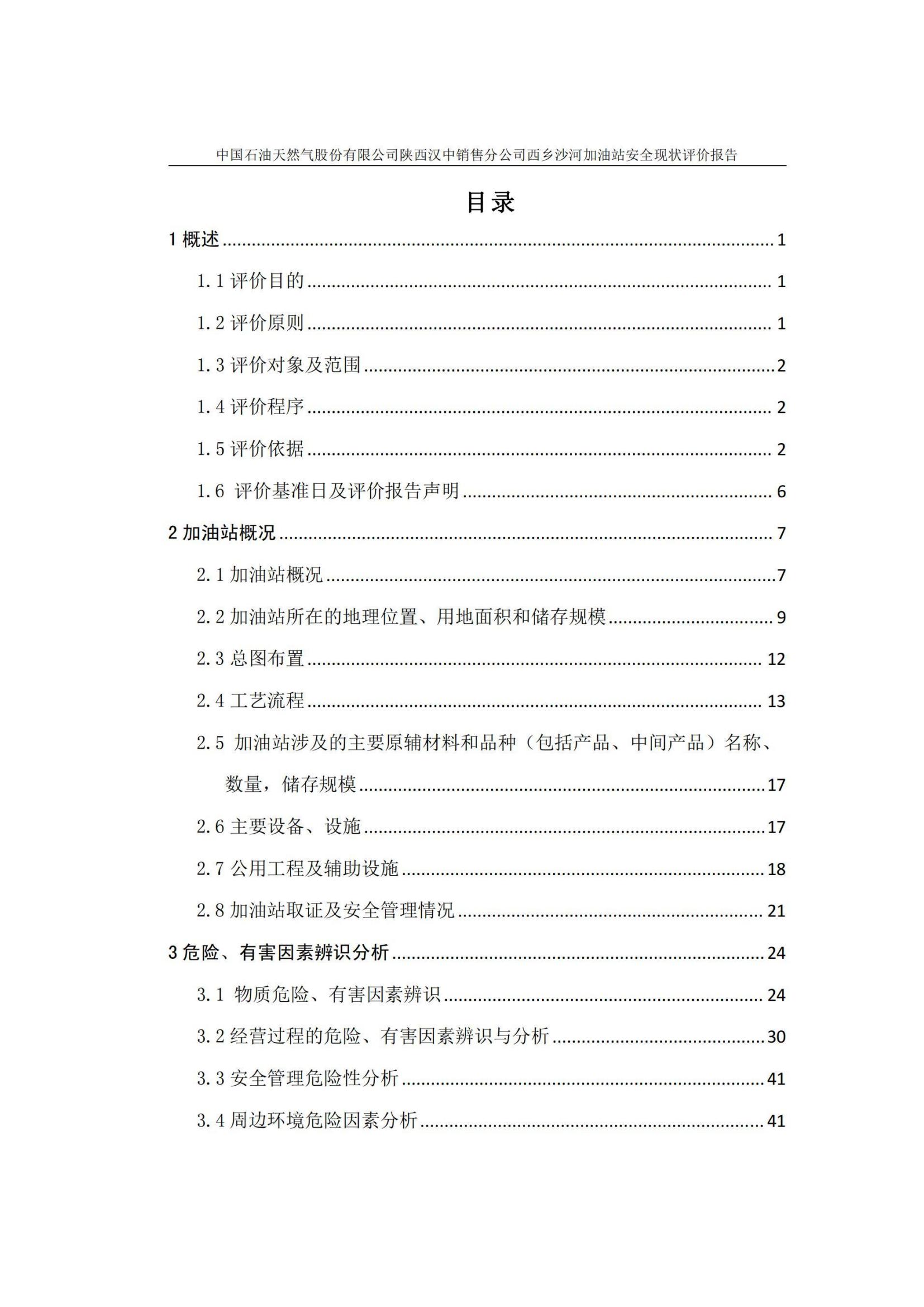 项目名称 | 中国石油天然气股份有限公司陕西汉中销售分公司西乡沙河加油站安全现状评价报告 | ||||||