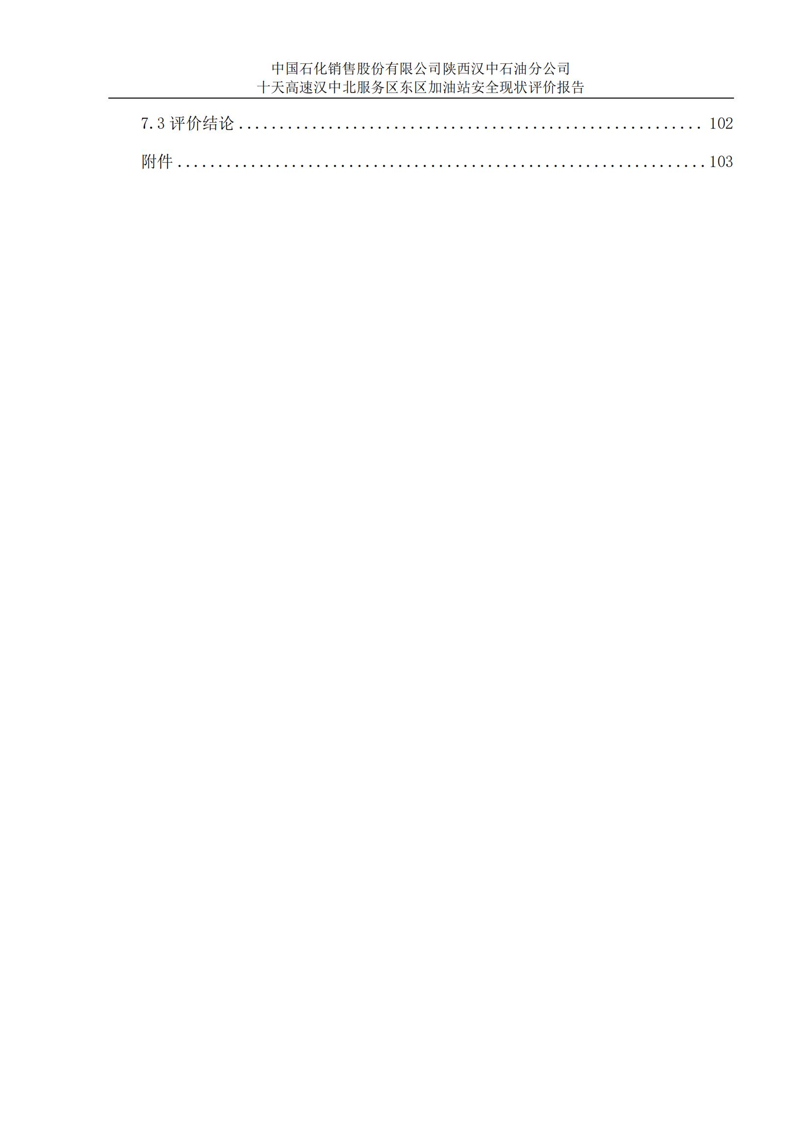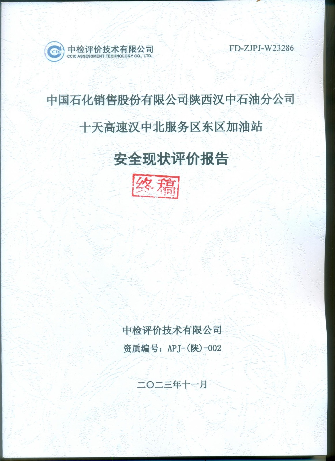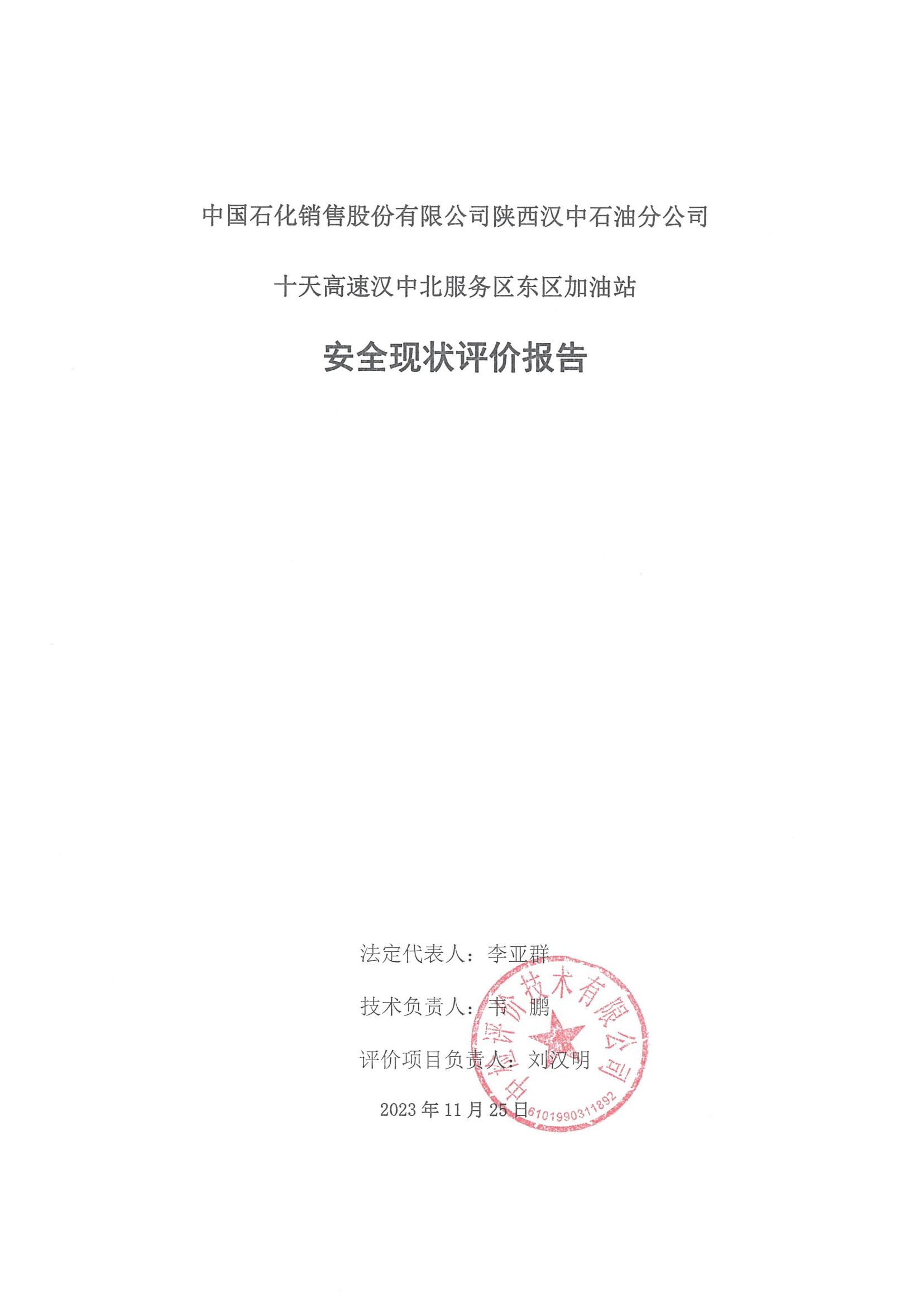 项目名称 | 中国石化销售股份有限公司陕西汉中石油分公司 十天高速汉中北服务区东区加油站安全现状评价报告 | ||||||