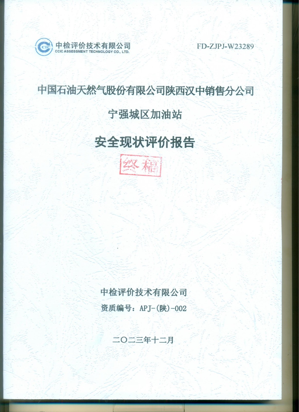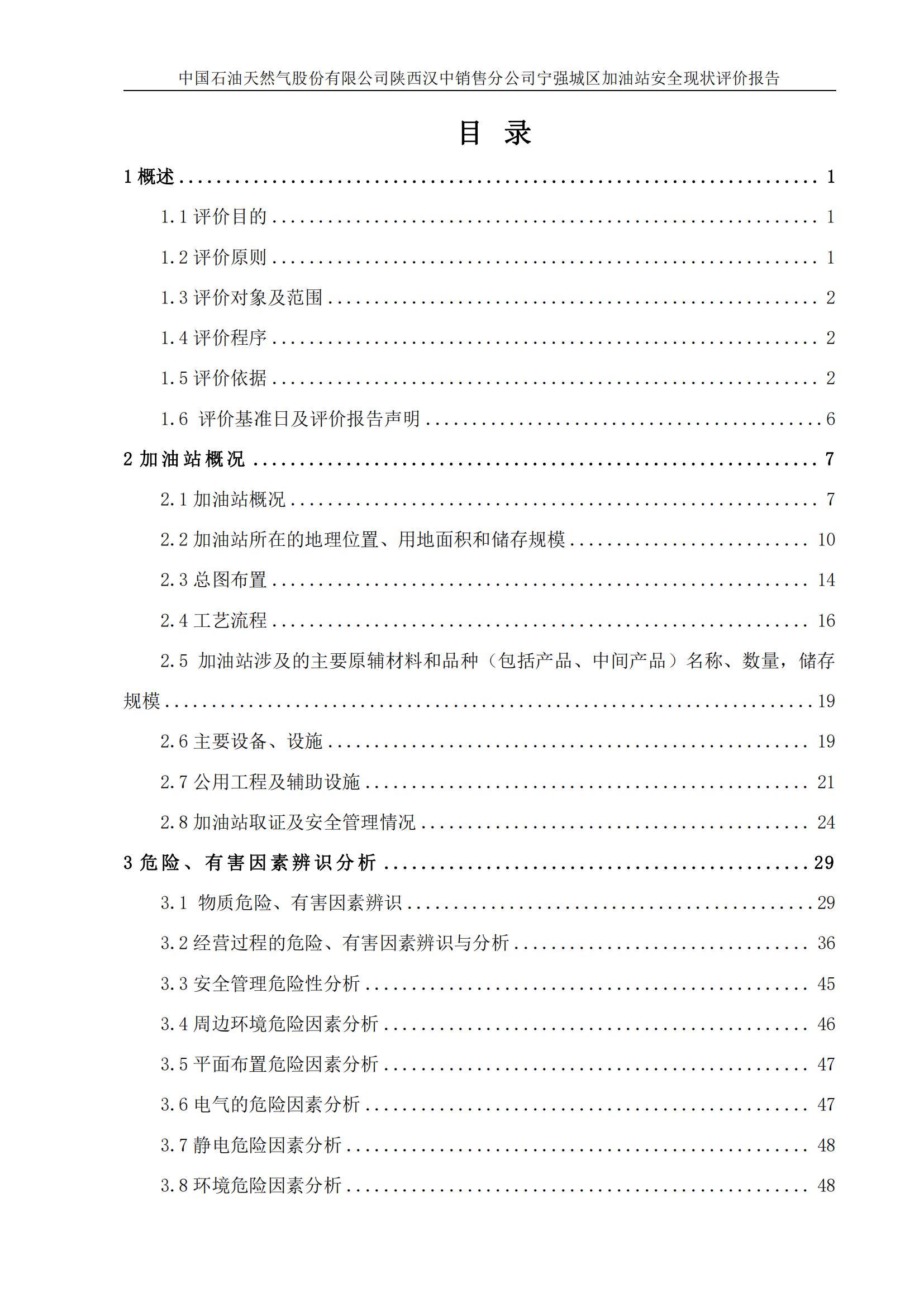 项目名称 | 中国石油天然气股份有限公司 陕西汉中销售分公司宁强城区加油站安全现状评价报告 | ||||||