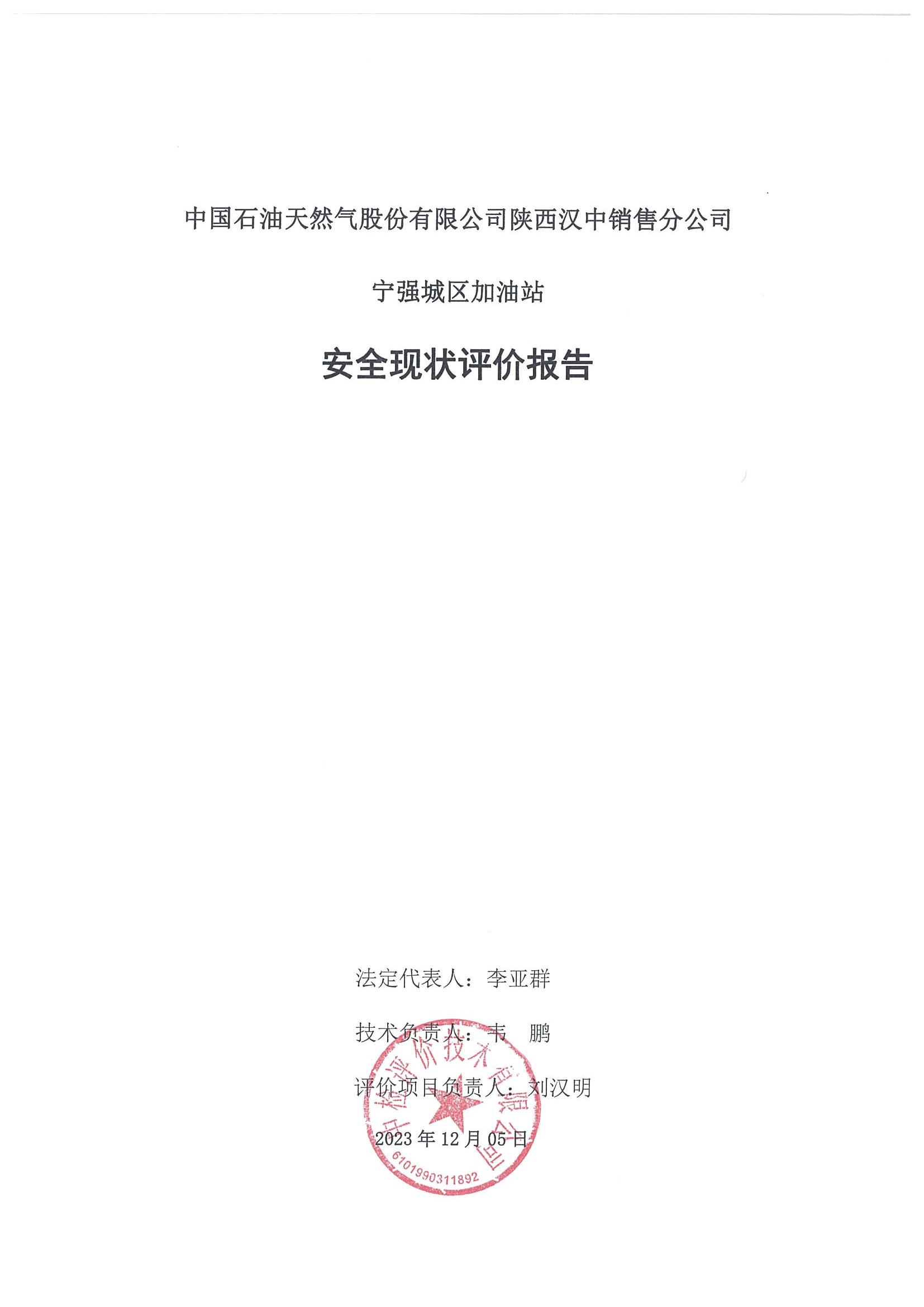 中国石油天然气股份有限公司陕西汉中销售分公司宁强城区加油站安全现状评价报告