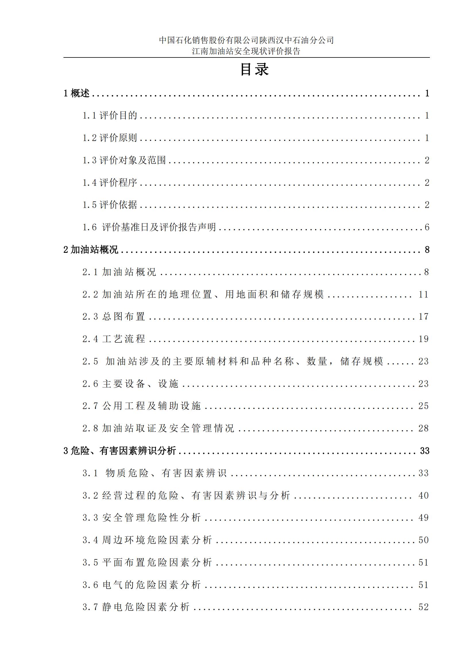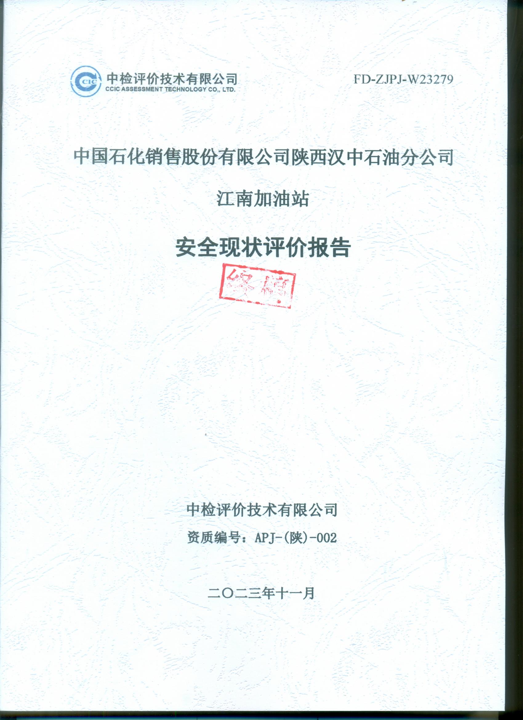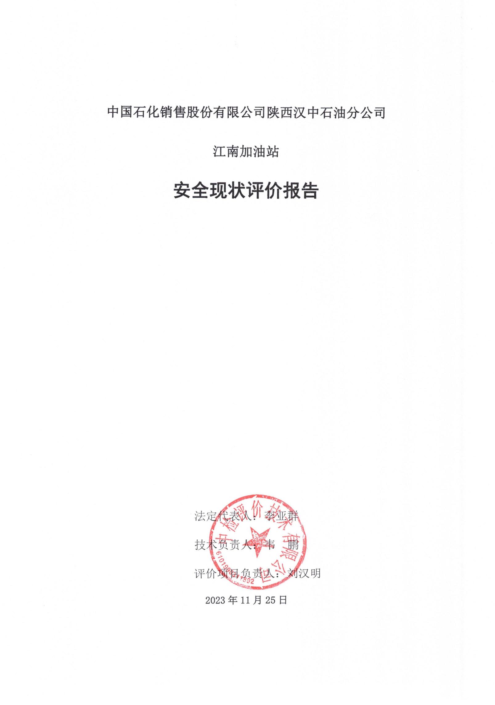 中国石化销售股份有限公司陕西汉中石油分公司江南加油站安全现状评价报告