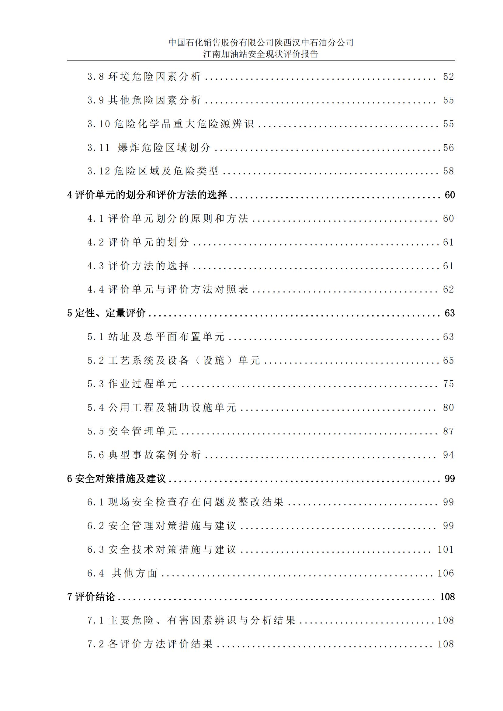项目名称 | 中国石化销售股份有限公司陕西汉中石油分公司 江南加油站安全现状评价报告 | ||||||