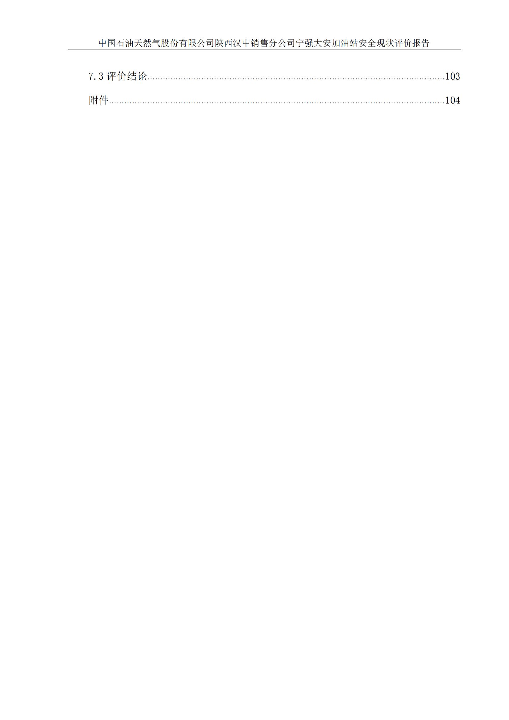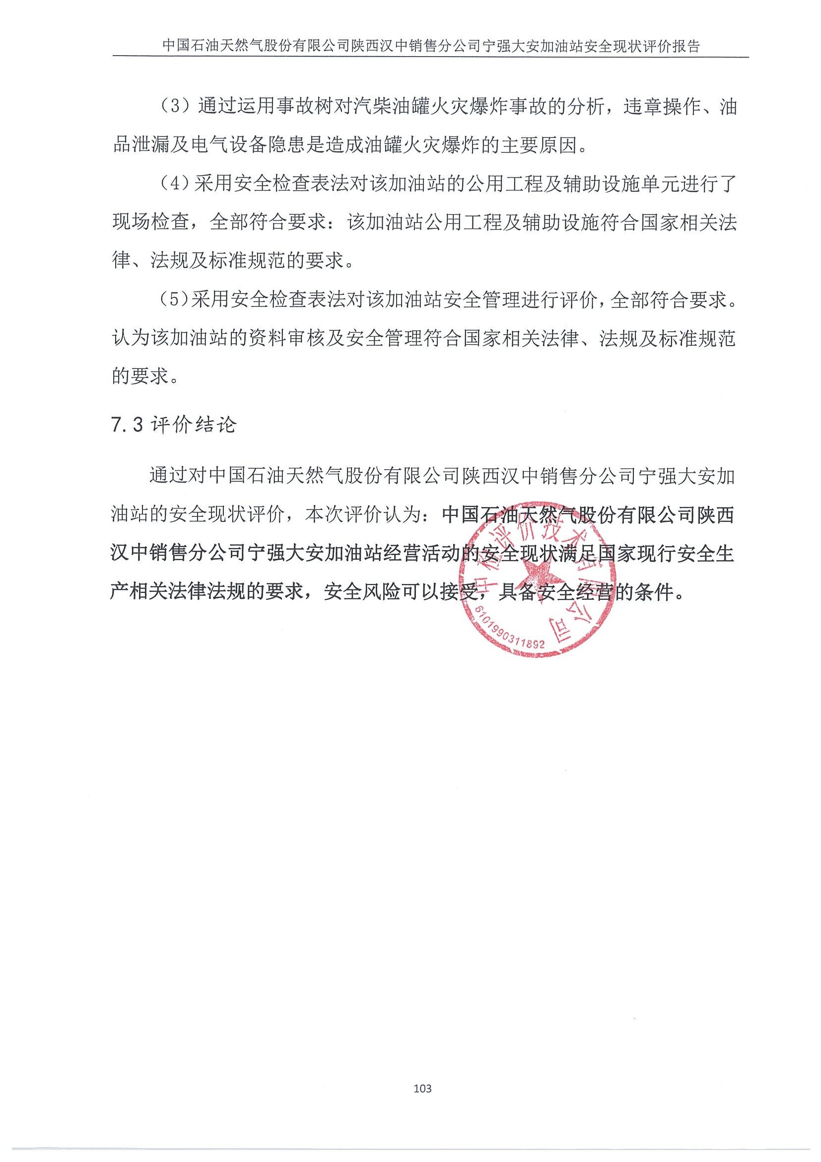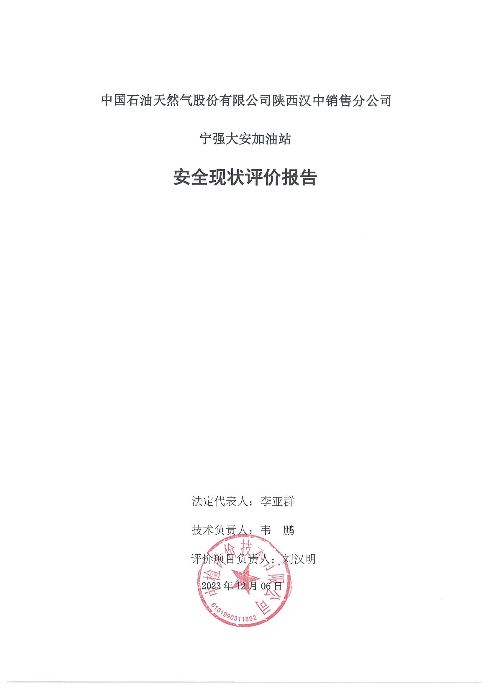 中国石油天然气股份有限公司陕西汉中销售分公司宁强大安加油站安全现状评价报告