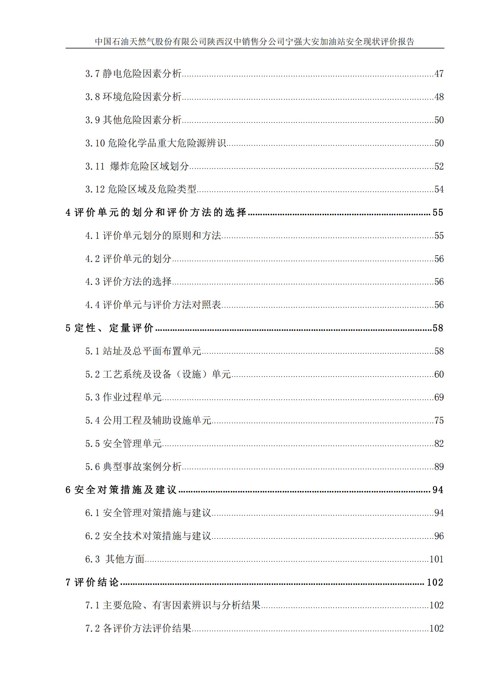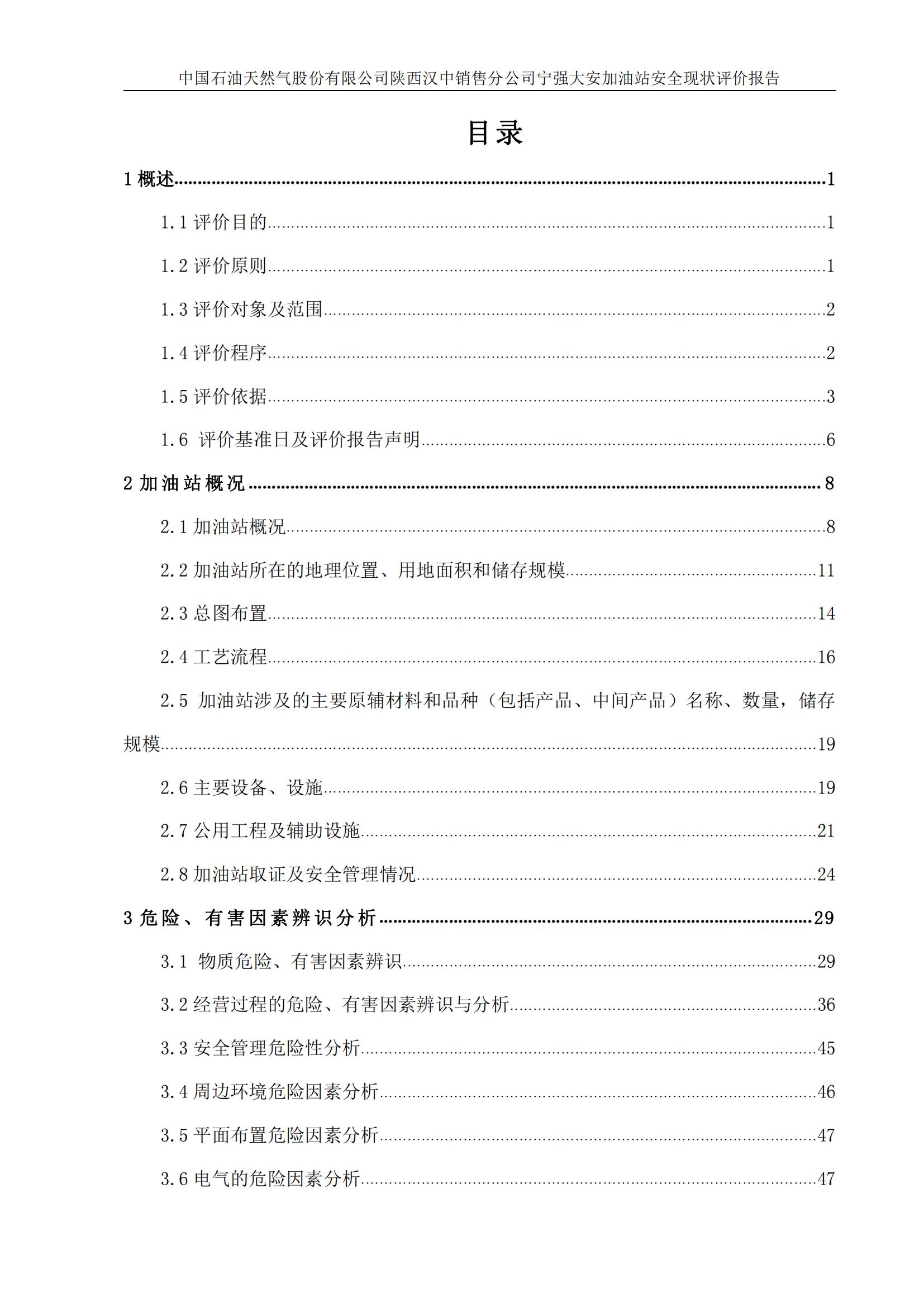 项目名称 | 中国石油天然气股份有限公司 陕西汉中销售分公司宁强大安加油站安全现状评价报告 | ||||||