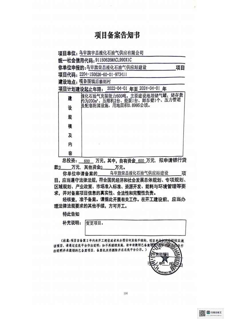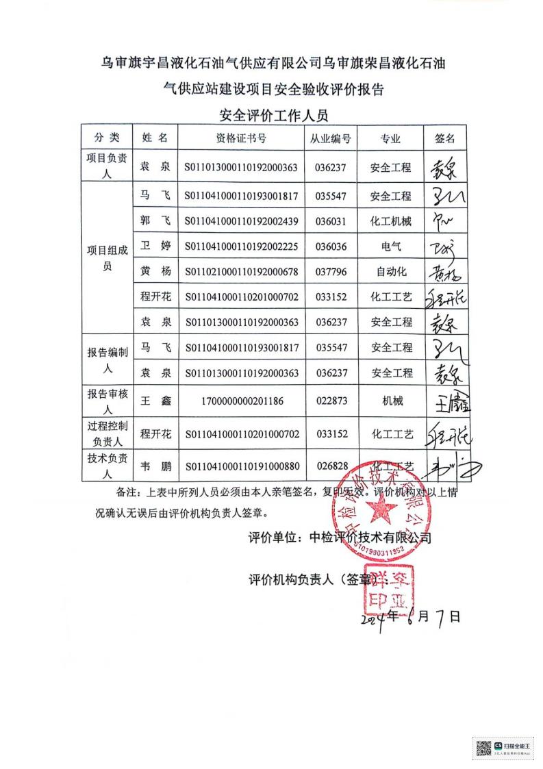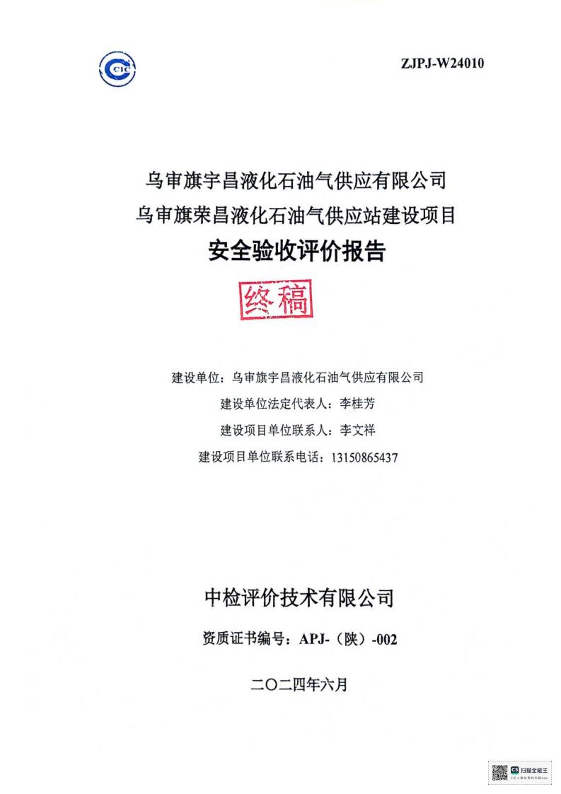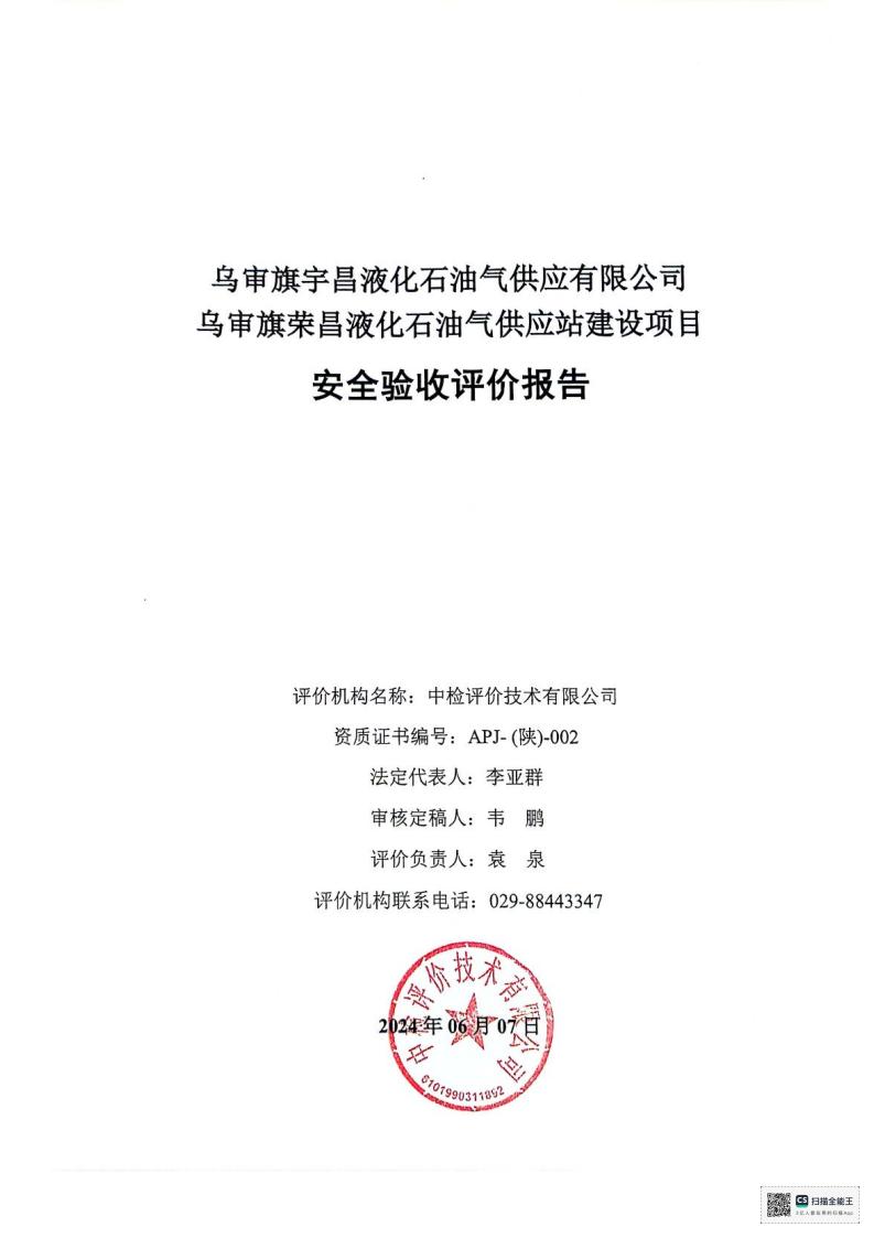 项目名称 | 乌审旗宇昌液化石油气供应有限公司乌审旗荣昌液化石油气供应站建设项目安全验收评价报告 | ||||||