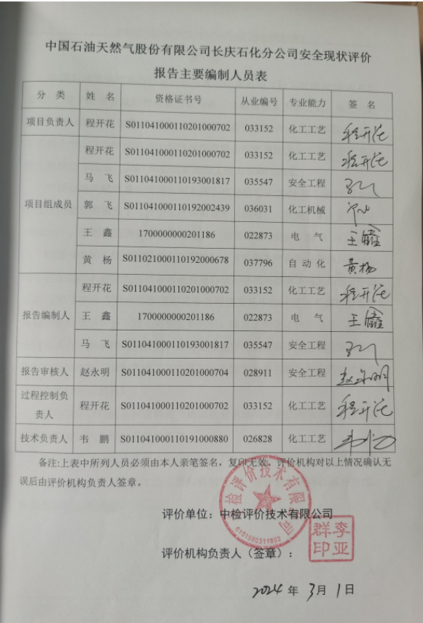 中国石油天然气股份有限公司长庆石化分公司安全现状评价报告
