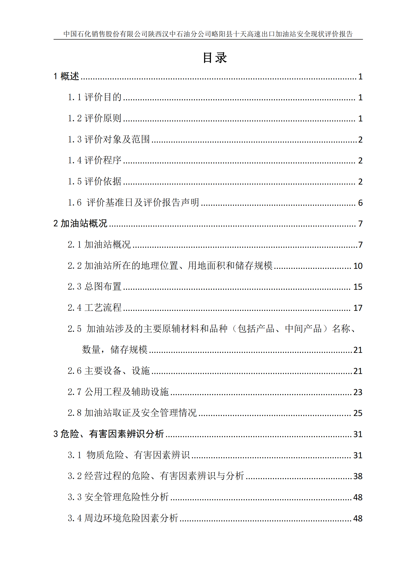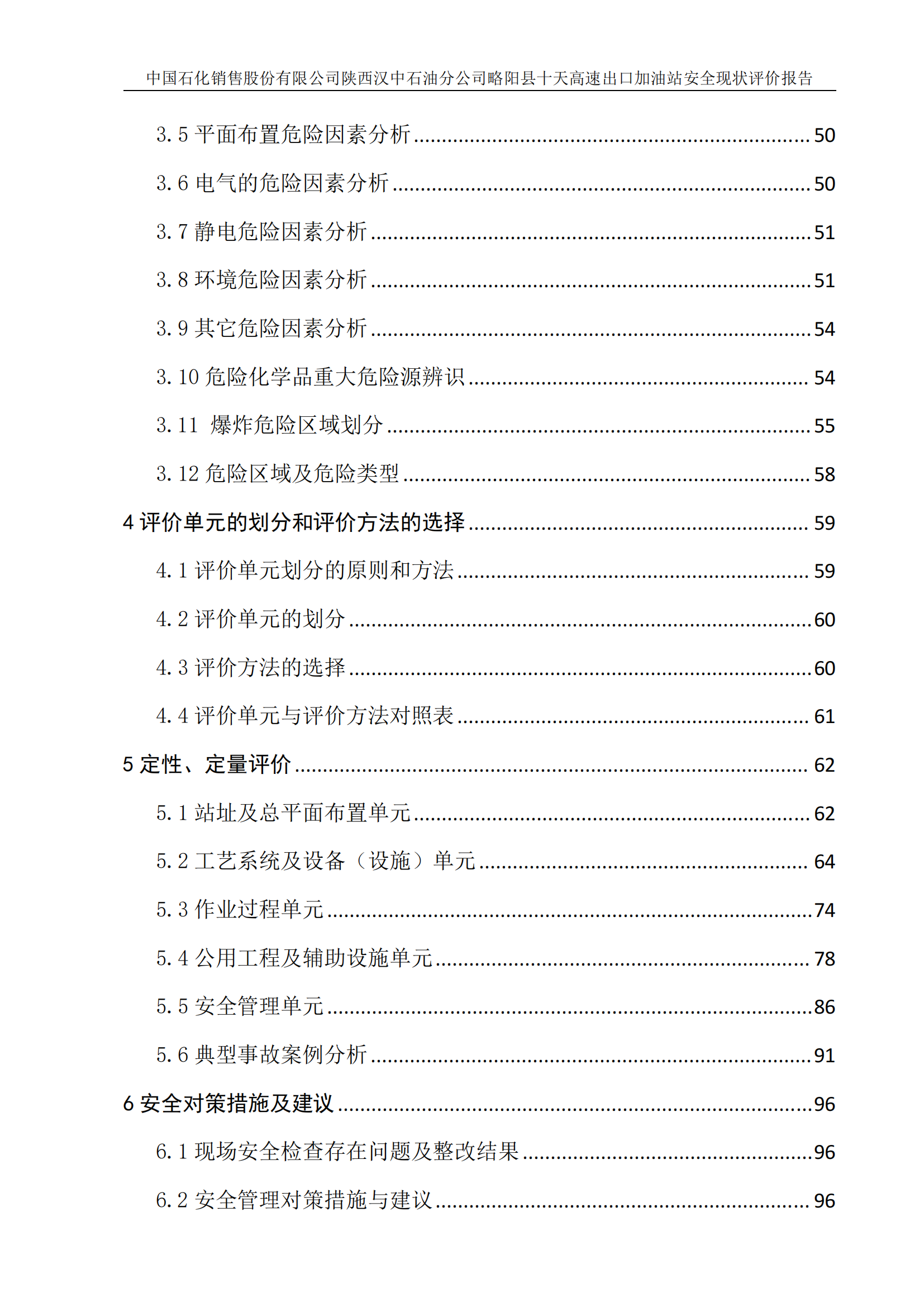 项目名称 | 中国石化销售股份有限公司陕西汉中石油分公司略阳县十天高速出口加油站安全现状评价报告 | ||||||