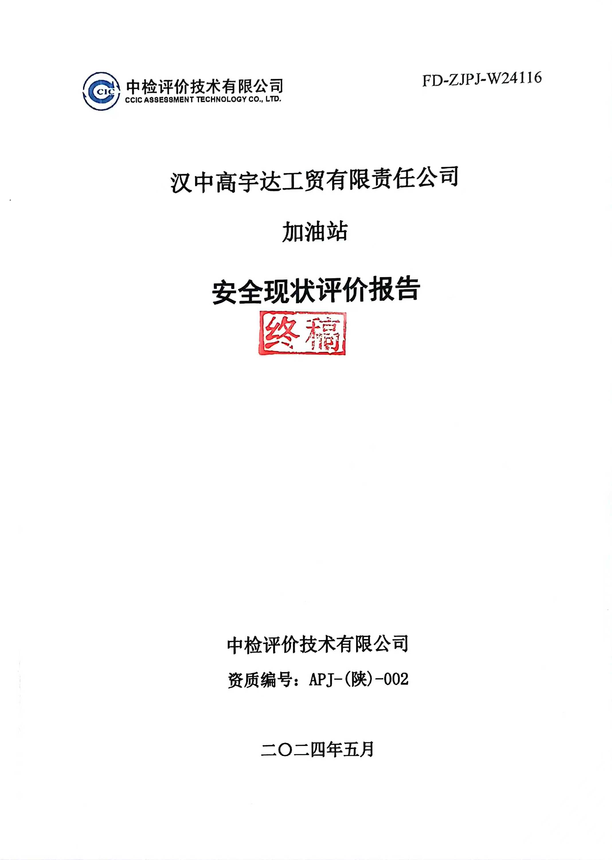 汉中高宇达工贸有限责任公司加油站安全现状评价报告