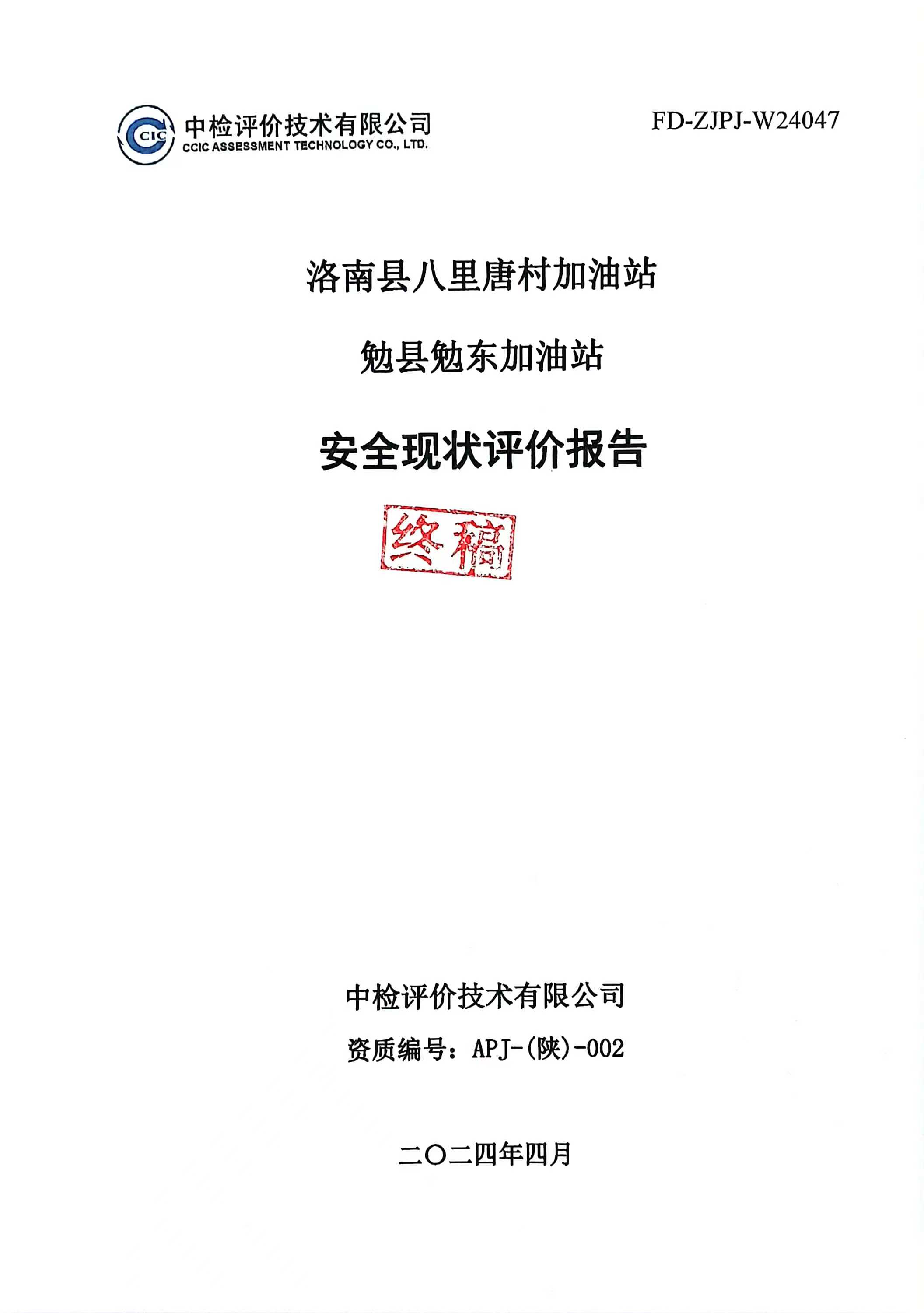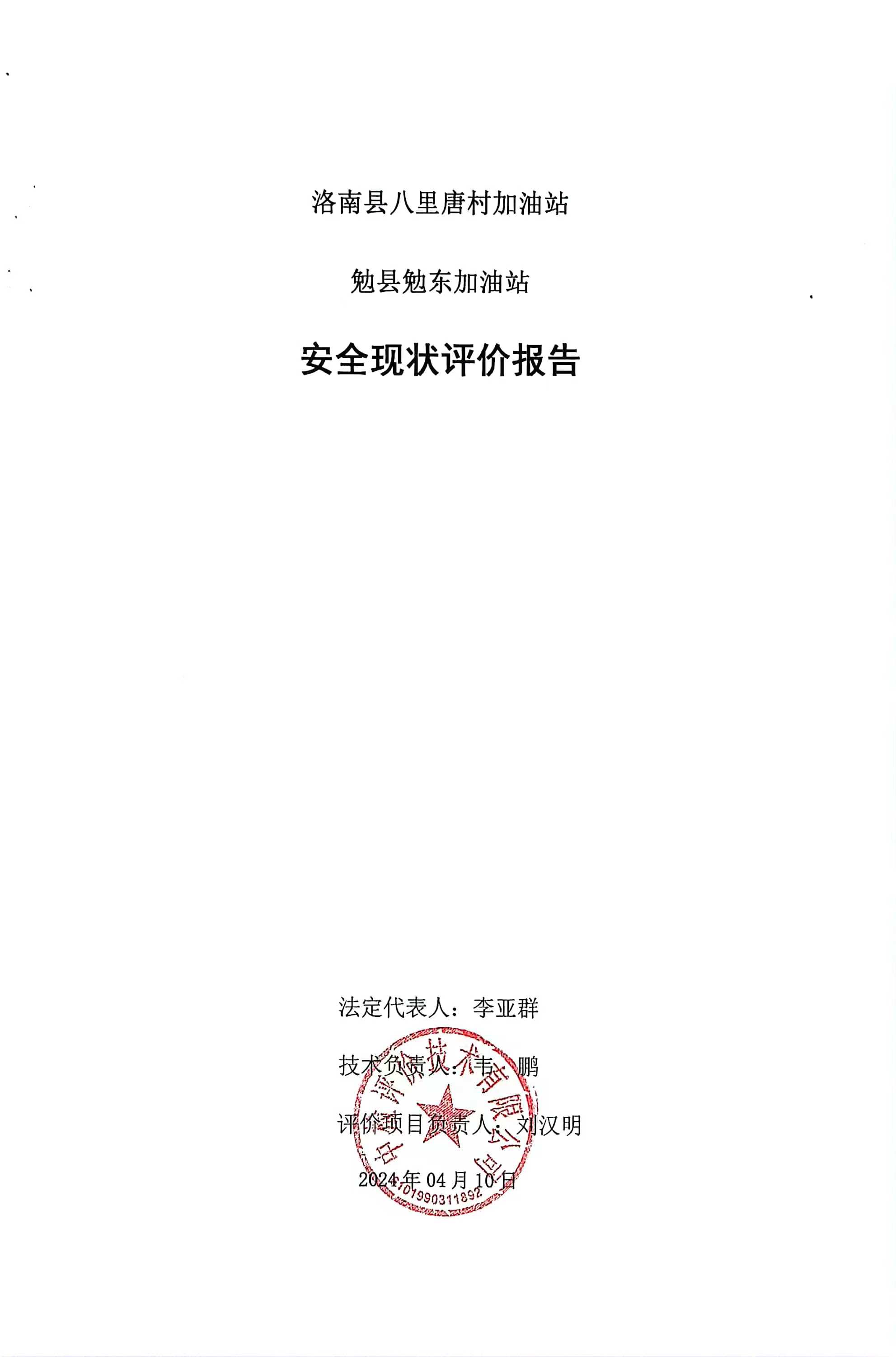 洛南县八里唐村加油站勉县勉东加油站安全现状评价报告