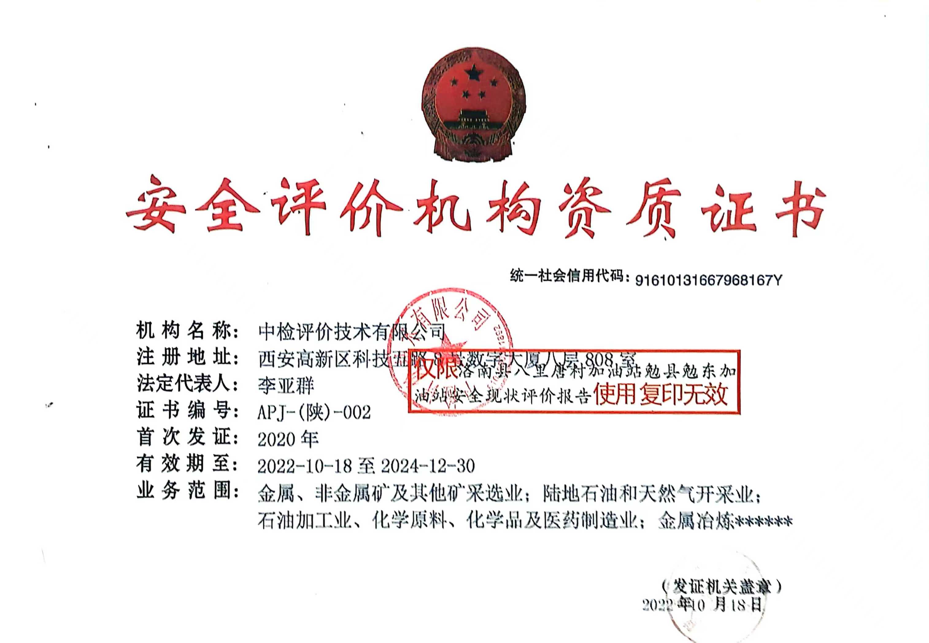 机构名称 | 中检评价技术有限公司 | 资质证号 | APJ-(陕)-002 | ||||