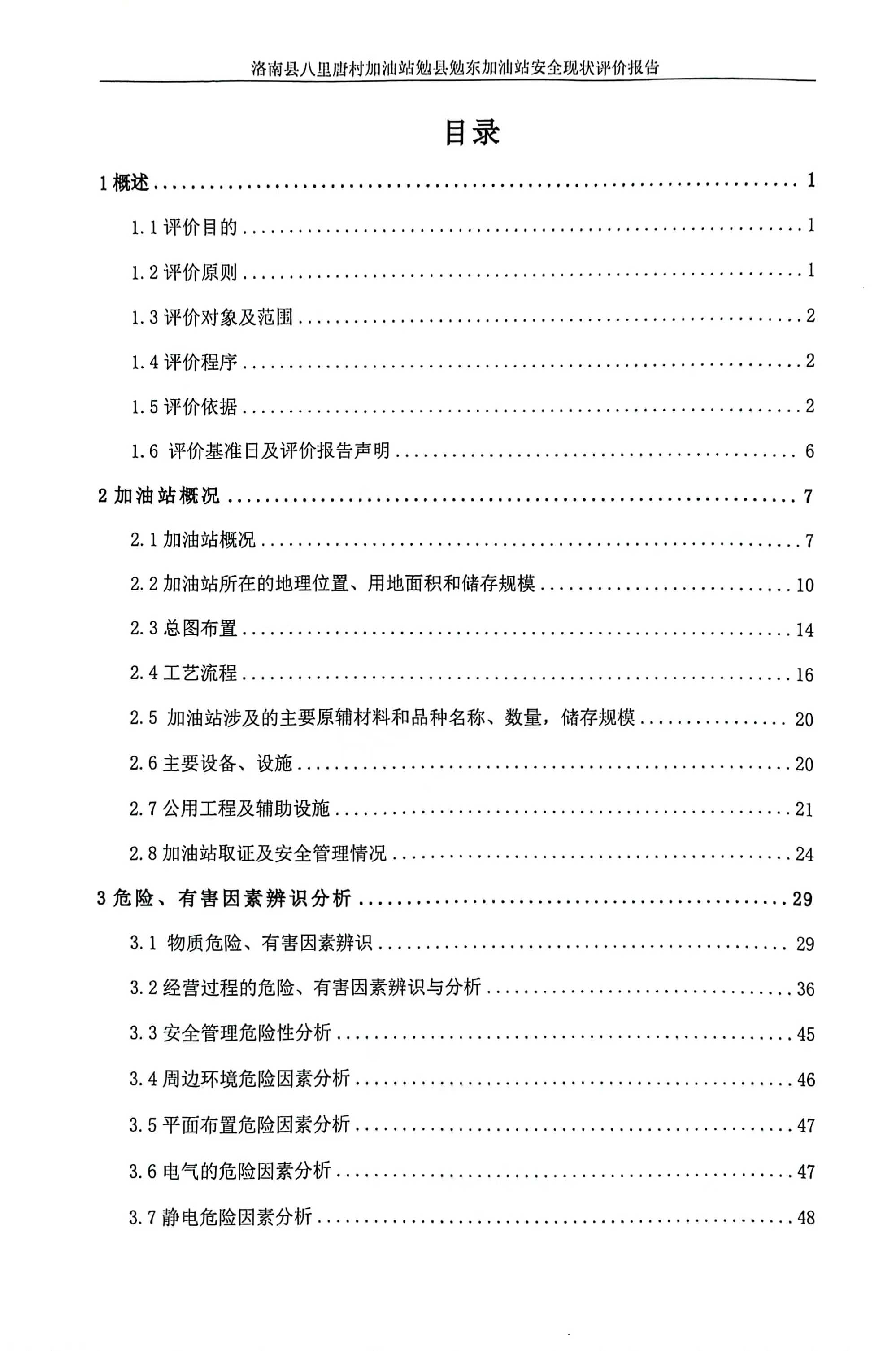项目名称 | 洛南县八里唐村加油站勉县勉东加油站安全现状评价报告 | ||||||
