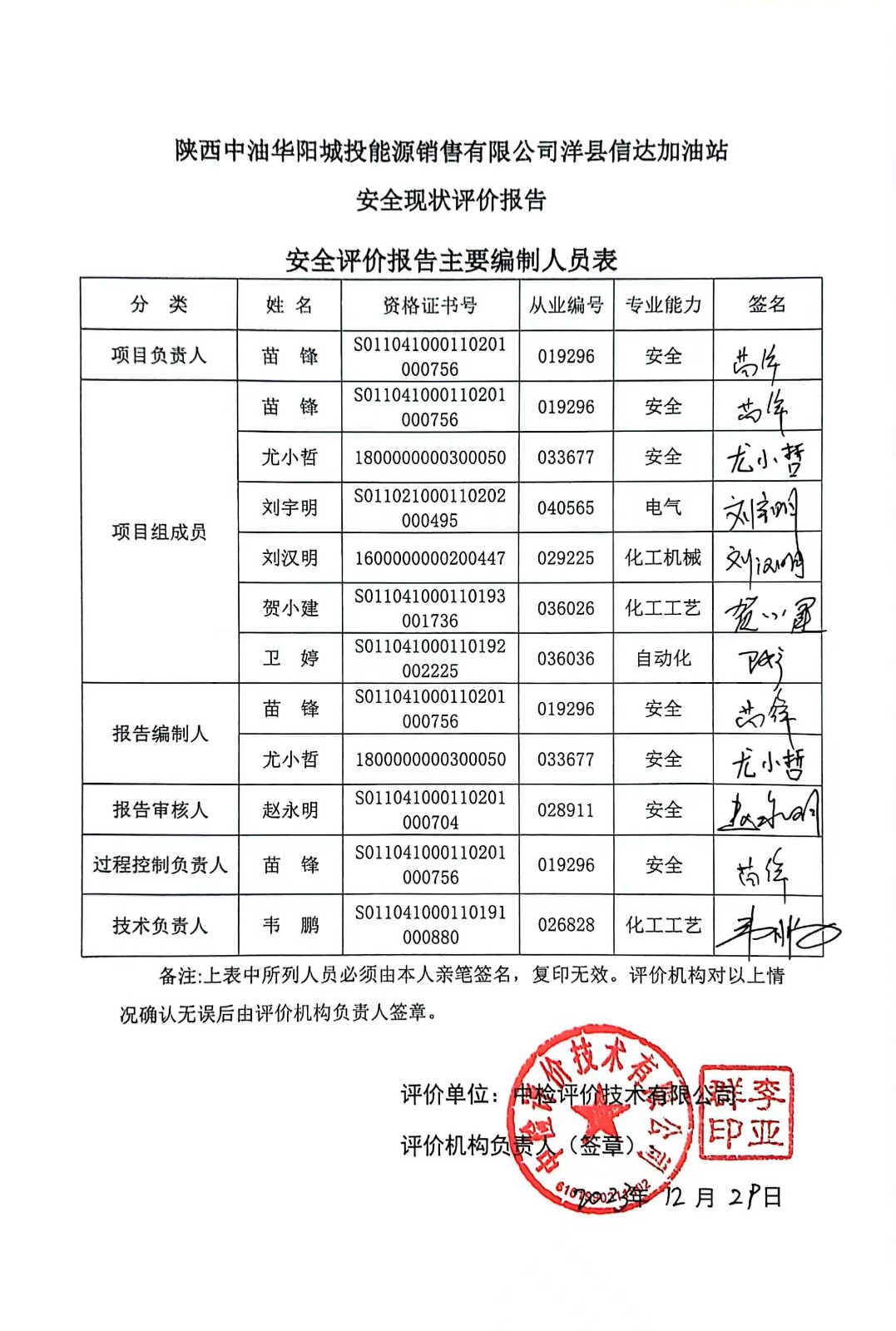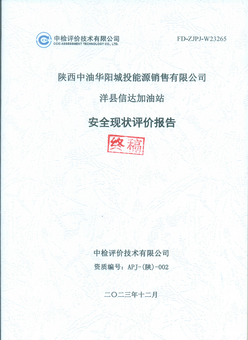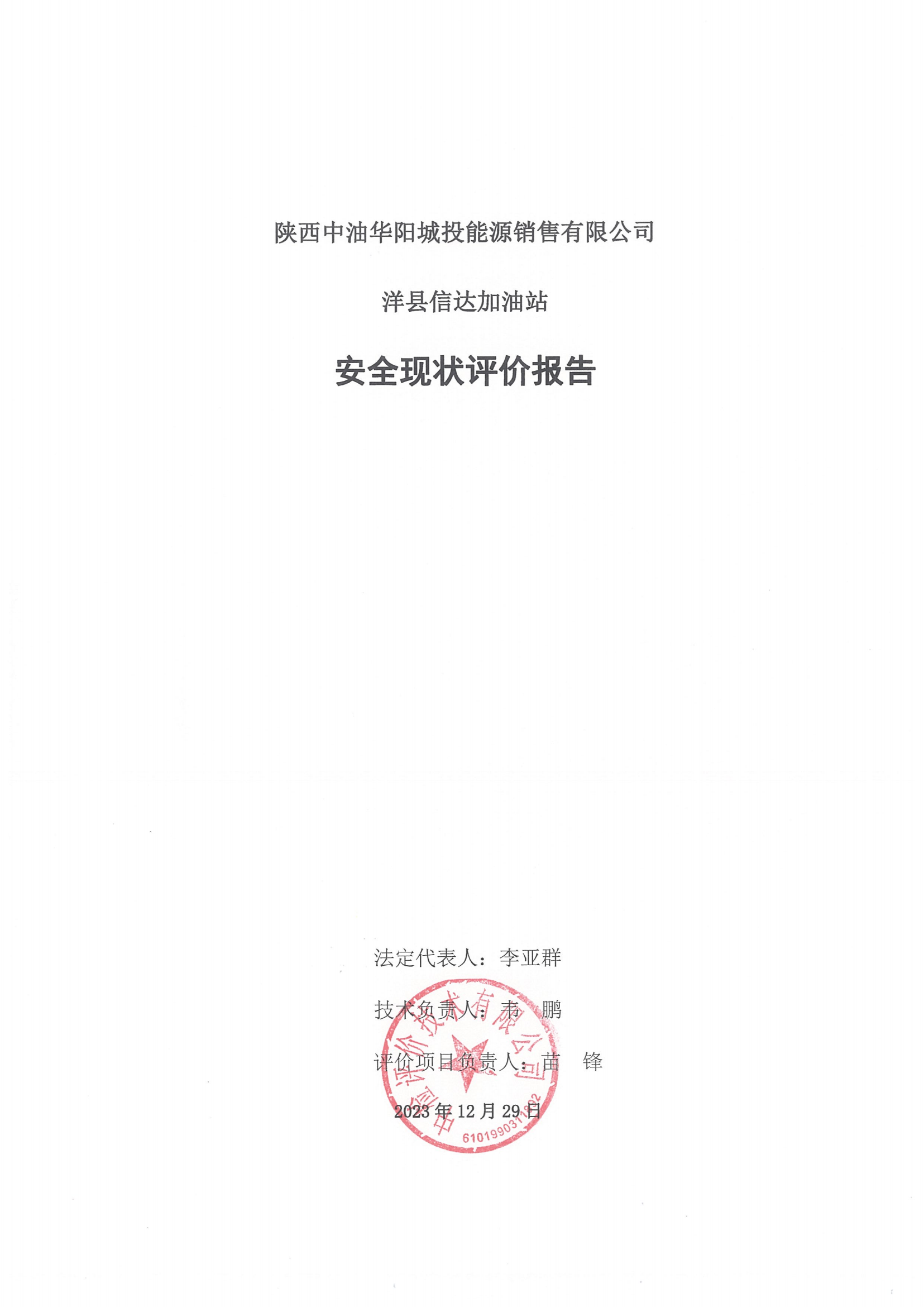 项目名称 | 陕西中油华阳城投能源销售有限公司洋县信达加油站安全现状评价报告 | ||||||