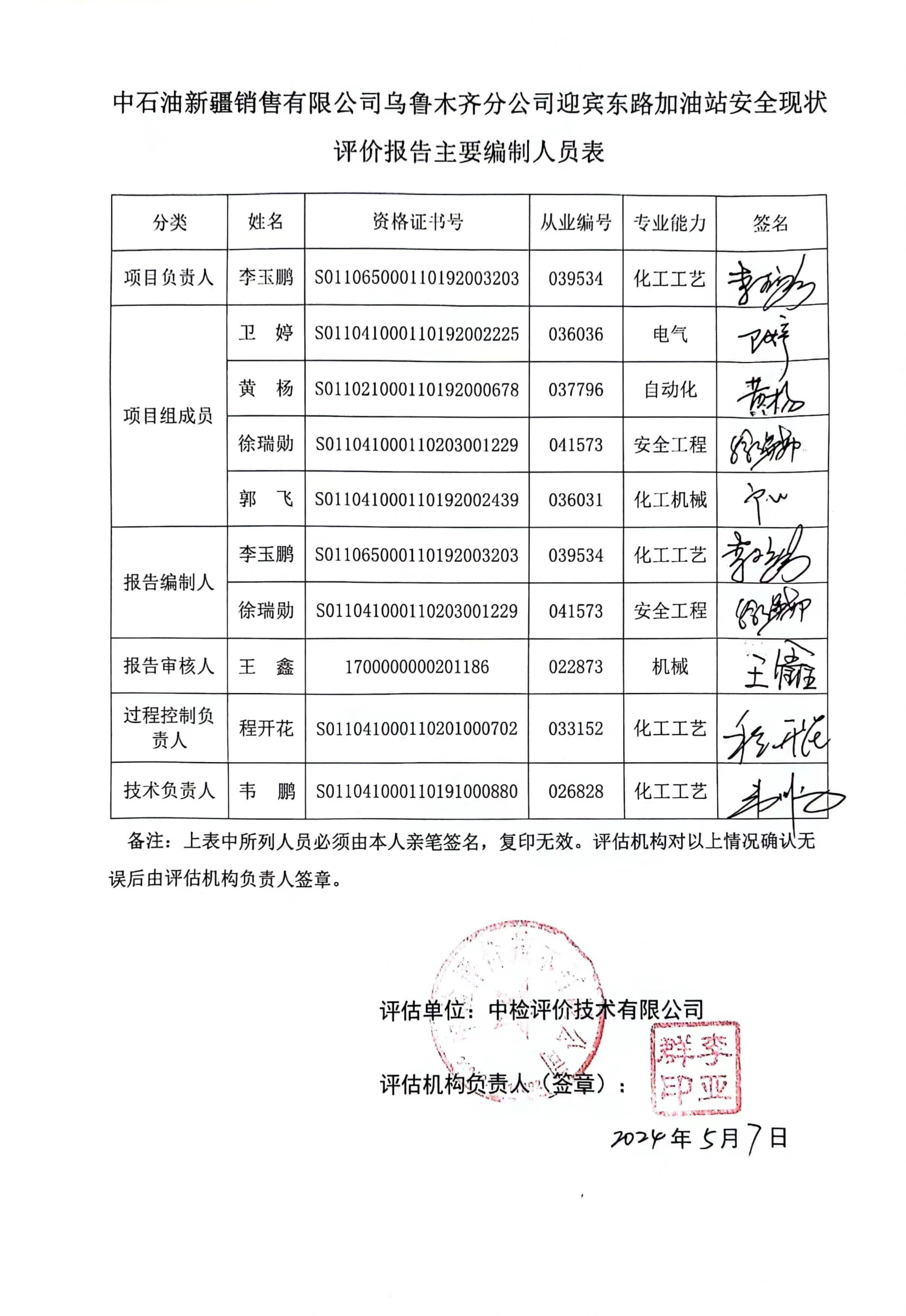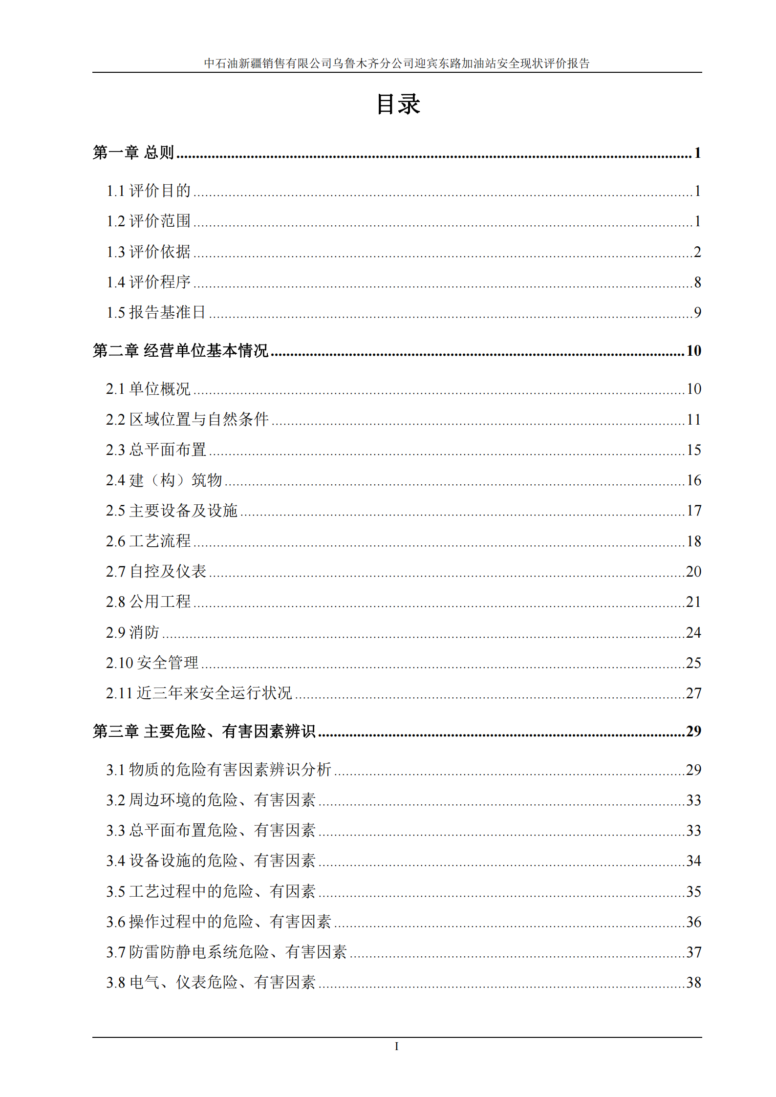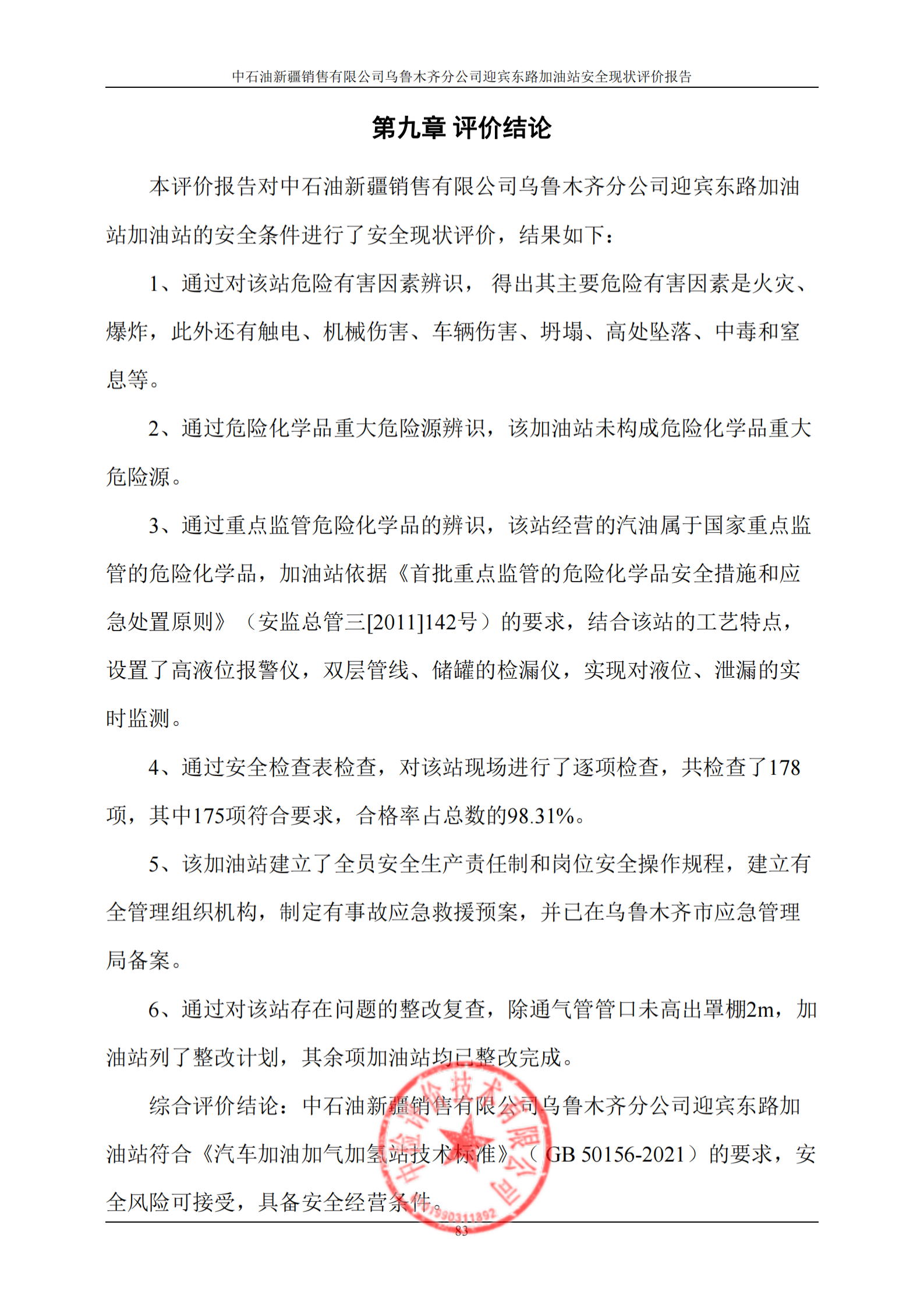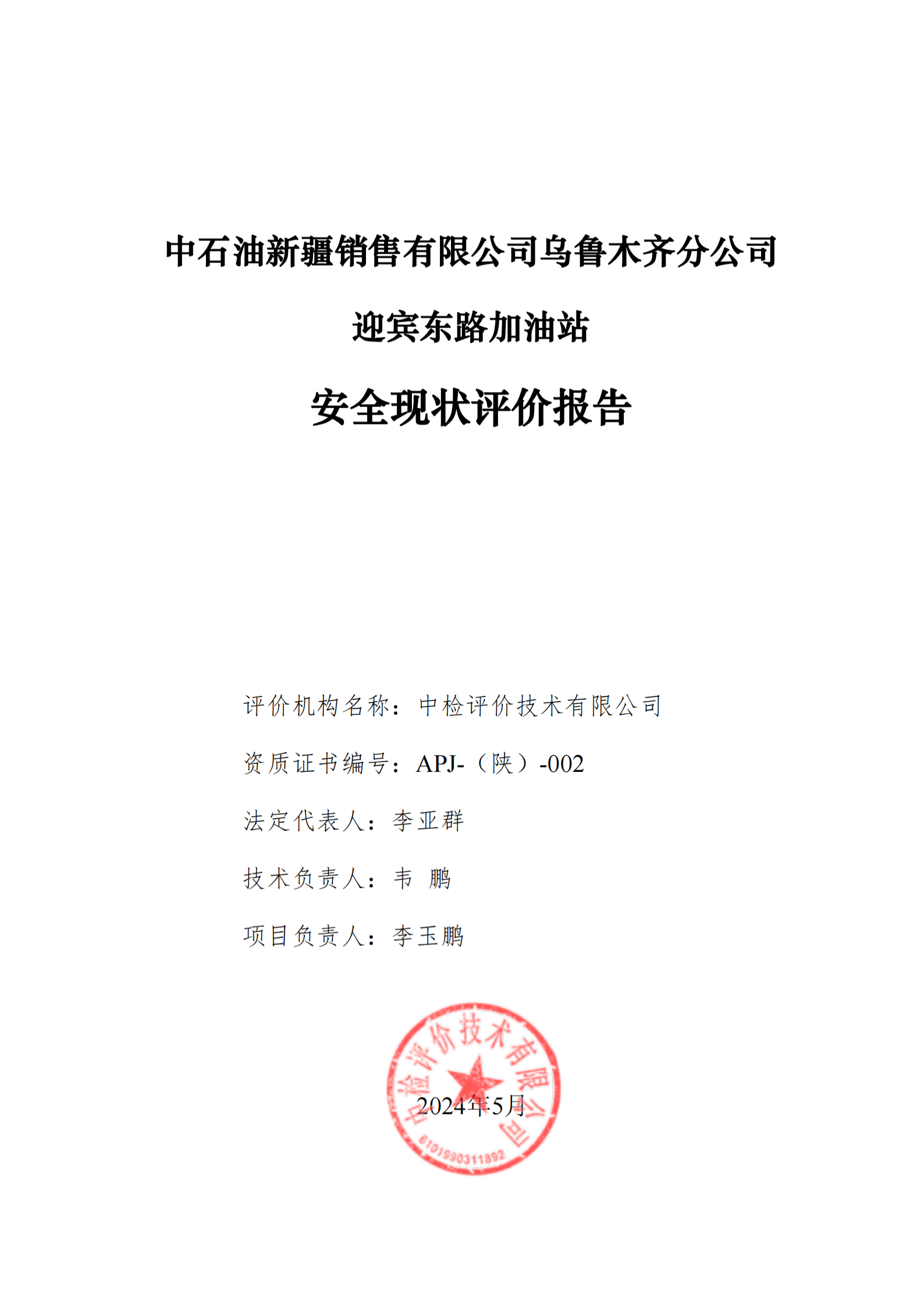 中石油新疆销售有限公司乌鲁木齐分公司迎宾东路加油站安全现状评价报告